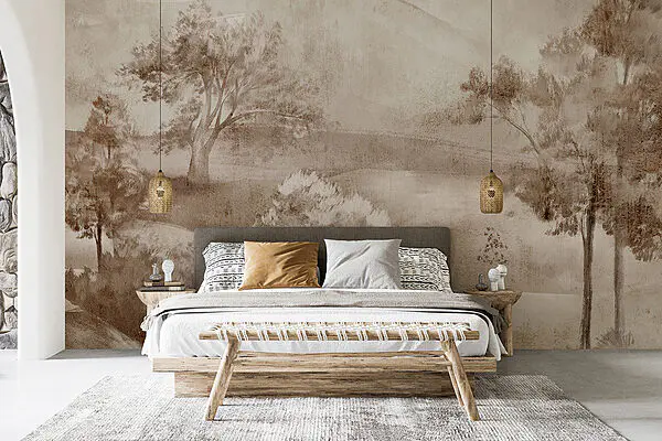 Wall murals Painting of a white sports car driving on a road with palm trees