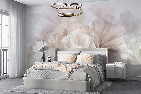 Wall mural Grey and white background with circles and lines