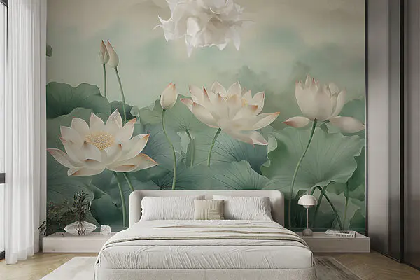 Wall mural Serene palm leaf patterns on neutral backdrop