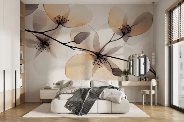 Wall mural Transparent leaves on a white background