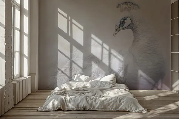 Wall mural White textured surface with white feathers