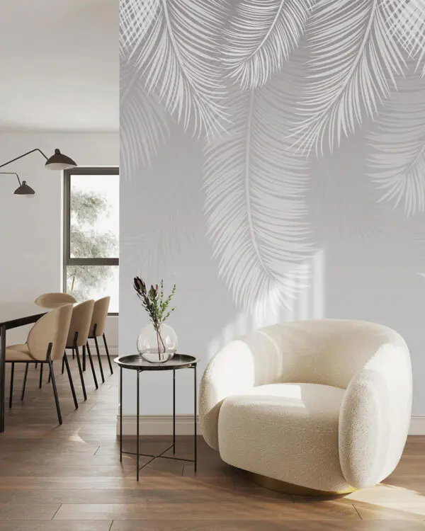 Wall murals White floral design on a grey background