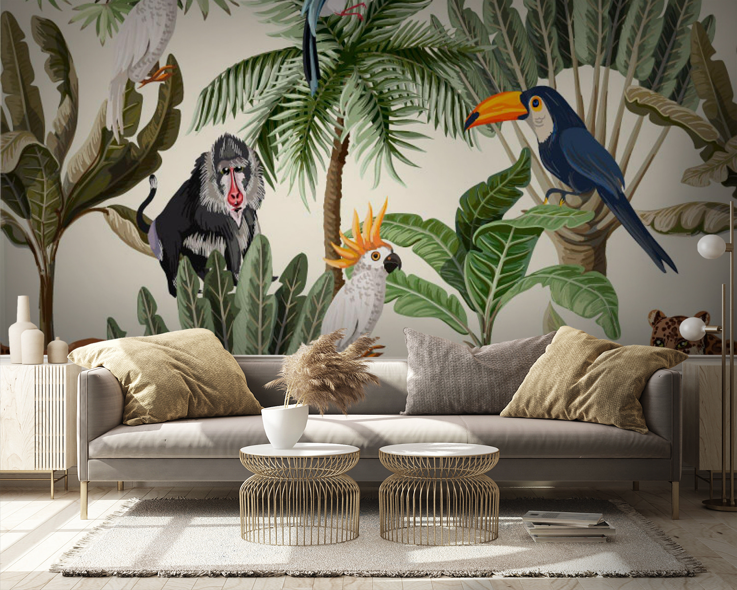 Transform any room into a vibrant oasis with this wall mural of tropical plants and lively birds. Imagine waking up to the playful chatter of a toucan or the curious stare of a zebra peeking from your wall. The lush greenery brings a touch of nature indoors, making you feel like you’re on a permanent vacation. This mural doesn’t just decorate; it invites adventure. Perfect for a cozy corner or a bold statement wall, it’s like having a mini jungle at home. Who knows, you might even find yourself daydreaming of faraway places while sipping your coffee!