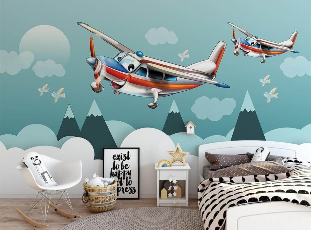 Transform any room into a whimsical sky with this “Wall Murals Cartoon Airplane Flying in the Sky.” Picture this: your little one gazing up, wide-eyed, at cheerful planes gliding through fluffy clouds. It’s like inviting a bit of adventure right onto the walls!