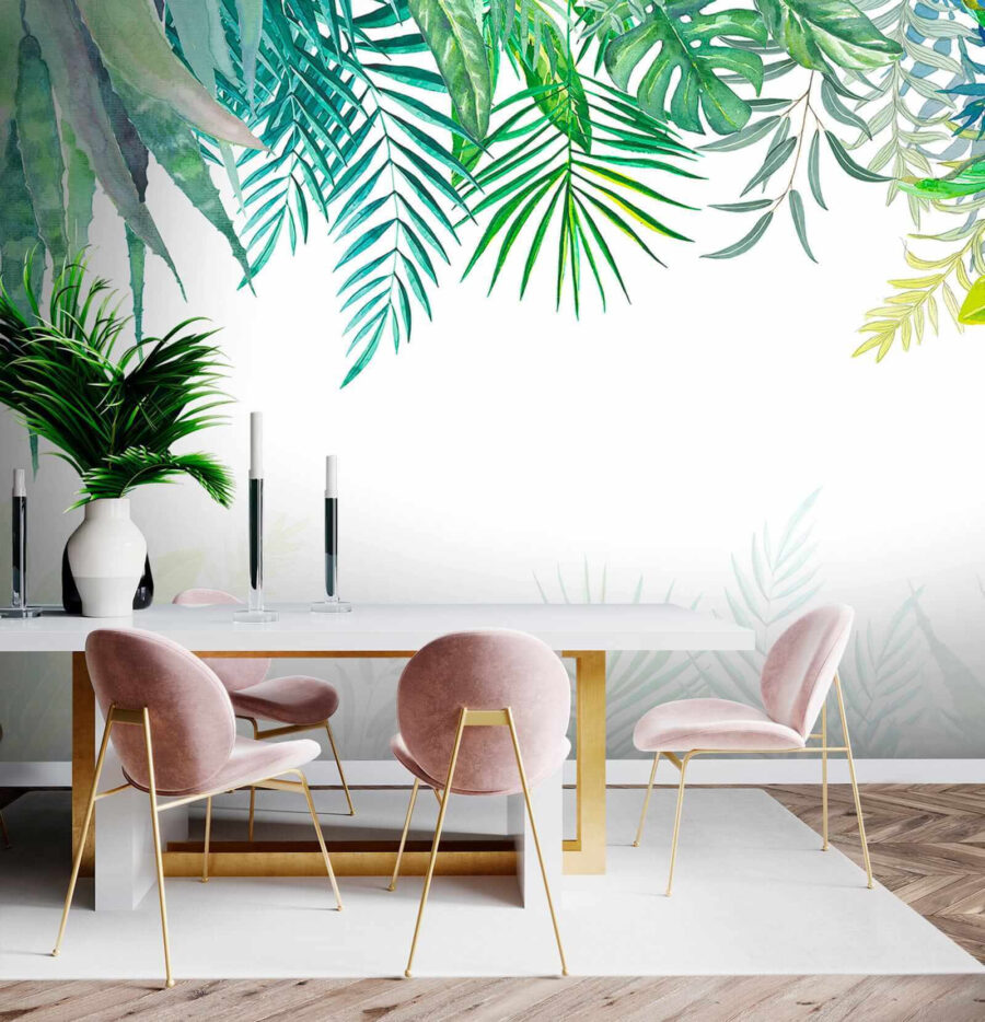 Transform your space into a tropical paradise with this stunning wall mural, “Group of Leaves on a White Background.” Imagine waking up to a lush canopy of greens whispering sweet nothings to your walls. It’s like bringing a hint of the rainforest right into your home—without the humidity! Each leaf dances with personality, creating a fresh vibe that feels both relaxing and invigorating, perfect for that cozy reading nook or a lively living area. Plus, it’s a fantastic conversation starter. “Oh, where did you get that?” Friends won’t just walk past—they’ll double-take!