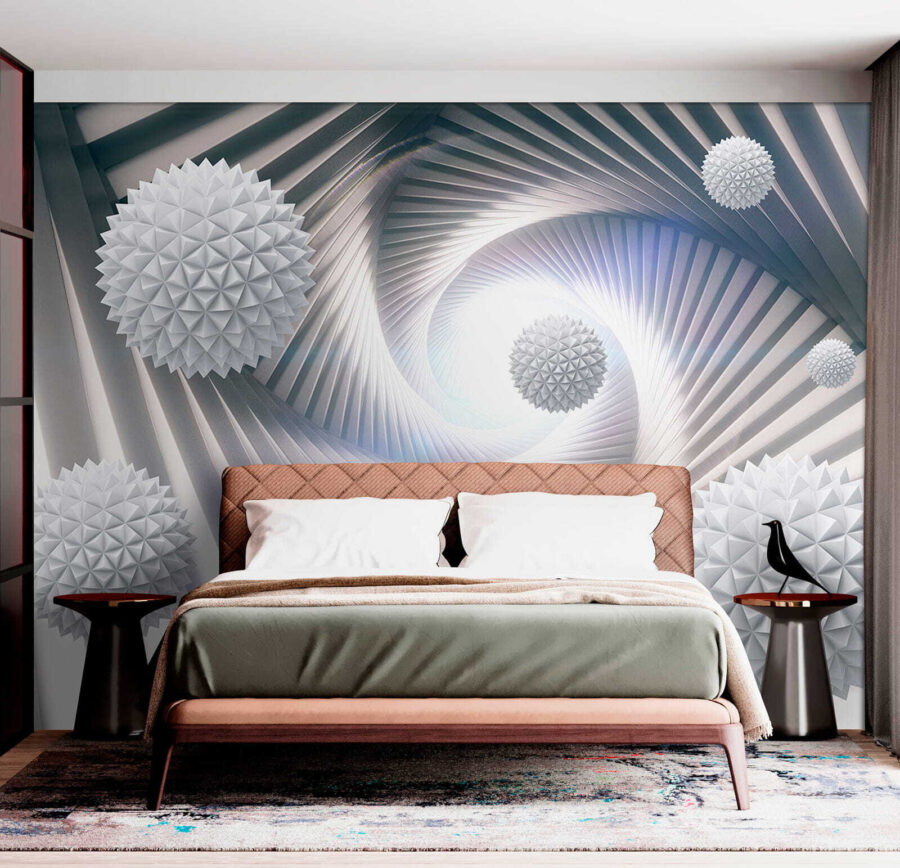Transforming a space has never been easier with the Wall Murals White Sphere with Triangles. Imagine stepping into a room where sleek, geometric shapes wrap around you, evoking both calm and intrigue. This design adds an artful touch that feels like an abstract escape, making even the tiniest nook feel open and airy.