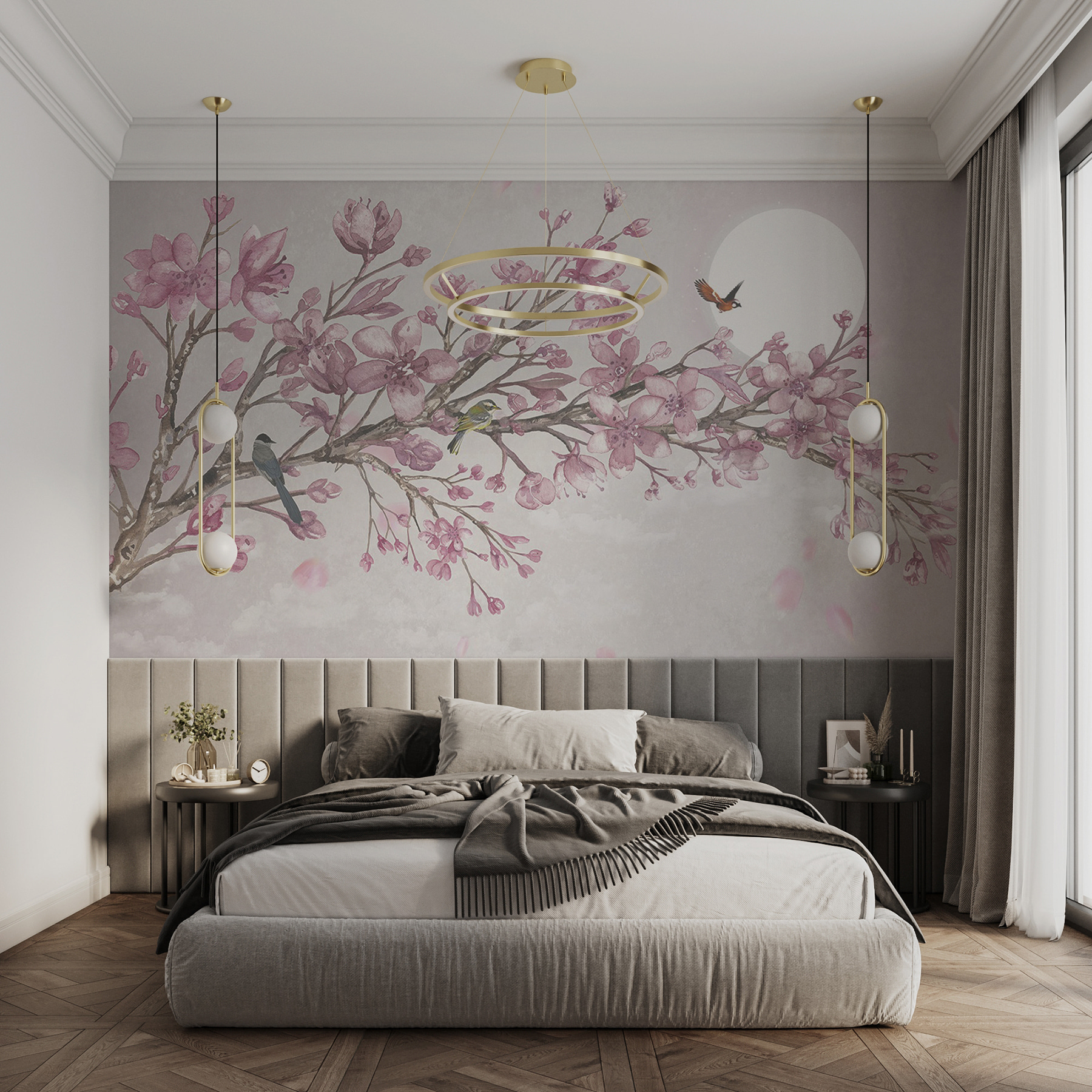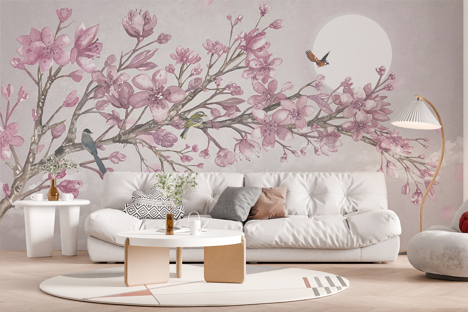 Bring a touch of nature indoors with this lovely wall mural featuring a charming bird perched on a blossoming branch. Imagine walking into a room that instantly feels lighter and more vibrant, like a breath of fresh spring air. The soft pink blossoms add a gentle pop of color, perfect for brightening even the dullest of walls. It’s like having a slice of the outdoors right in your living space. Picture sipping your morning coffee while soaking in the serene vibes, feeling a little more peaceful. It’s a wonderful conversation starter, too, as friends stop to admire the delicate details and dreamy atmosphere. A perfect choice for anyone looking to add a dash of whimsy to their home!