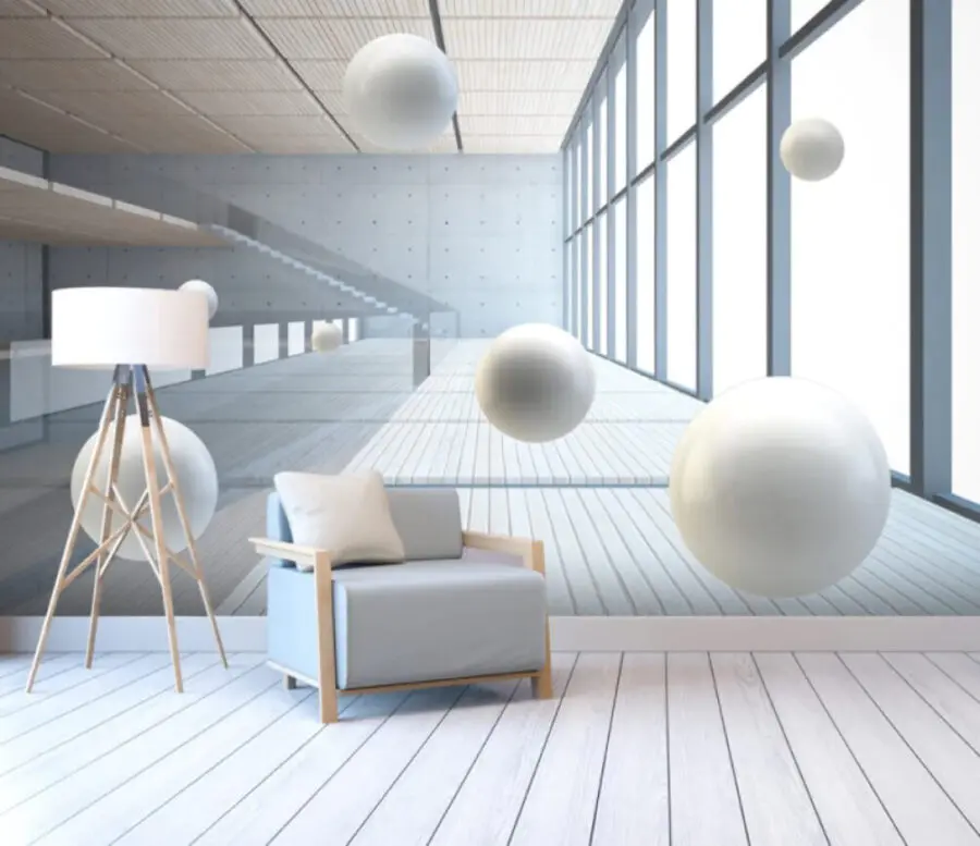 Transform any room into a spacious retreat with this mural featuring white balls floating gracefully over a wooden floor. It’s like a dance party for your walls, but only the coolest guests are invited. Imagine stepping into your space and feeling that instant lift in vibe—kind of like breathing in fresh air after being cooped up too long. The clean lines and subtle hues give off a vibe that’s both calming and slightly whimsical. Perfect for a modern living room or a cozy office, this mural adds that touch of personality that just clicks. Who knew a little decor could spark joy? Well, it can!