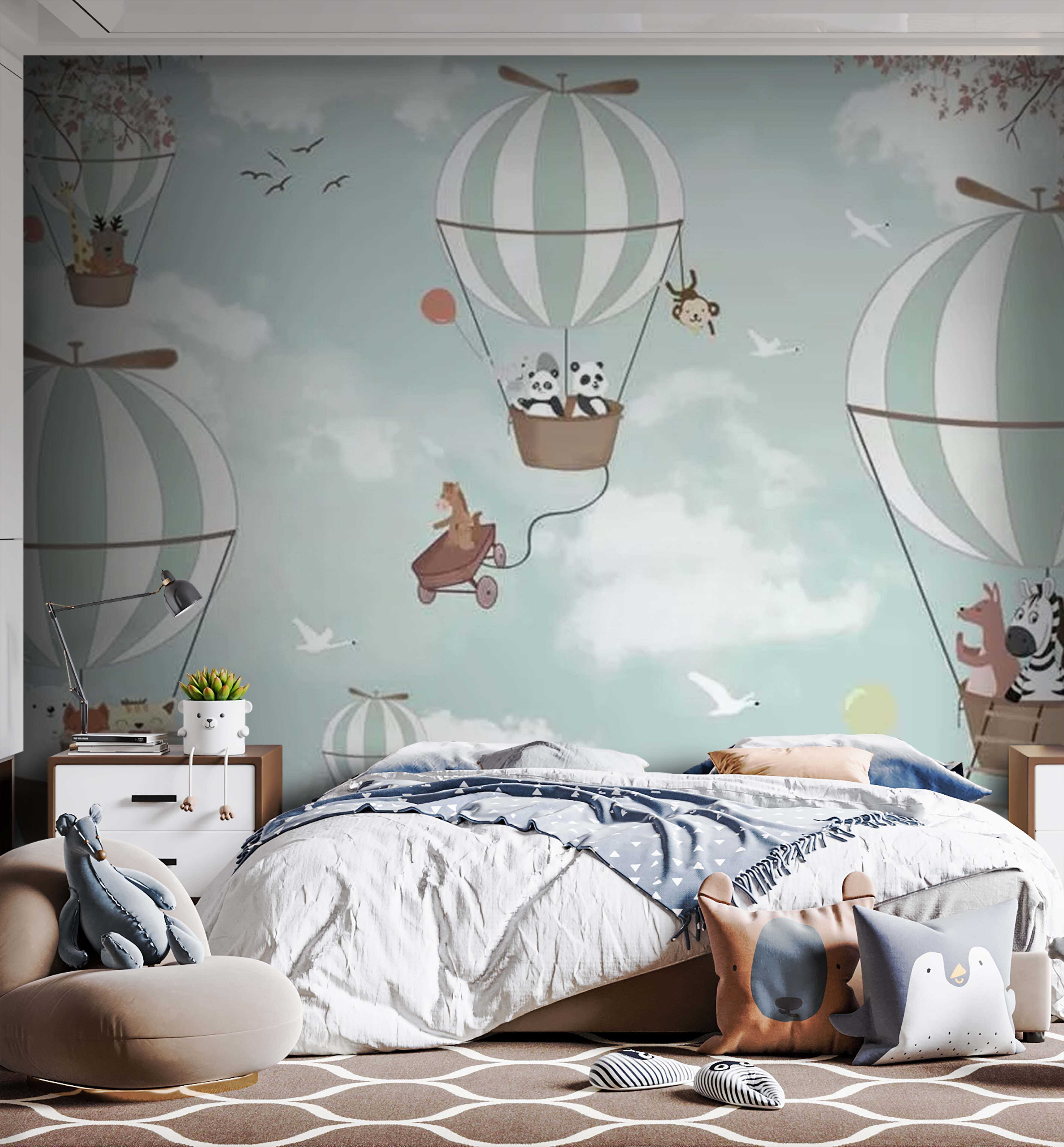 Transform any room into a whimsical wonderland with this charming wall mural featuring cartoon pandas swinging joyfully in hot air balloons. Each panda seems to float right off the wall, inviting smiles and giggles from children and adults alike. Picture little ones imagining themselves on adventures high in the sky, their imaginations soaring as freely as those playful pandas. The soft colors create a soothing atmosphere, perfect for nurseries or playrooms. It’s like having a little slice of joy hanging out on the walls, adding a touch of magic to everyday life. Who wouldn’t want to wake up to a panda parade?