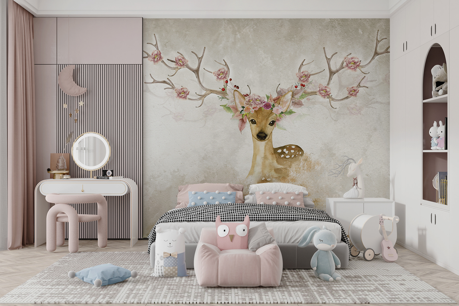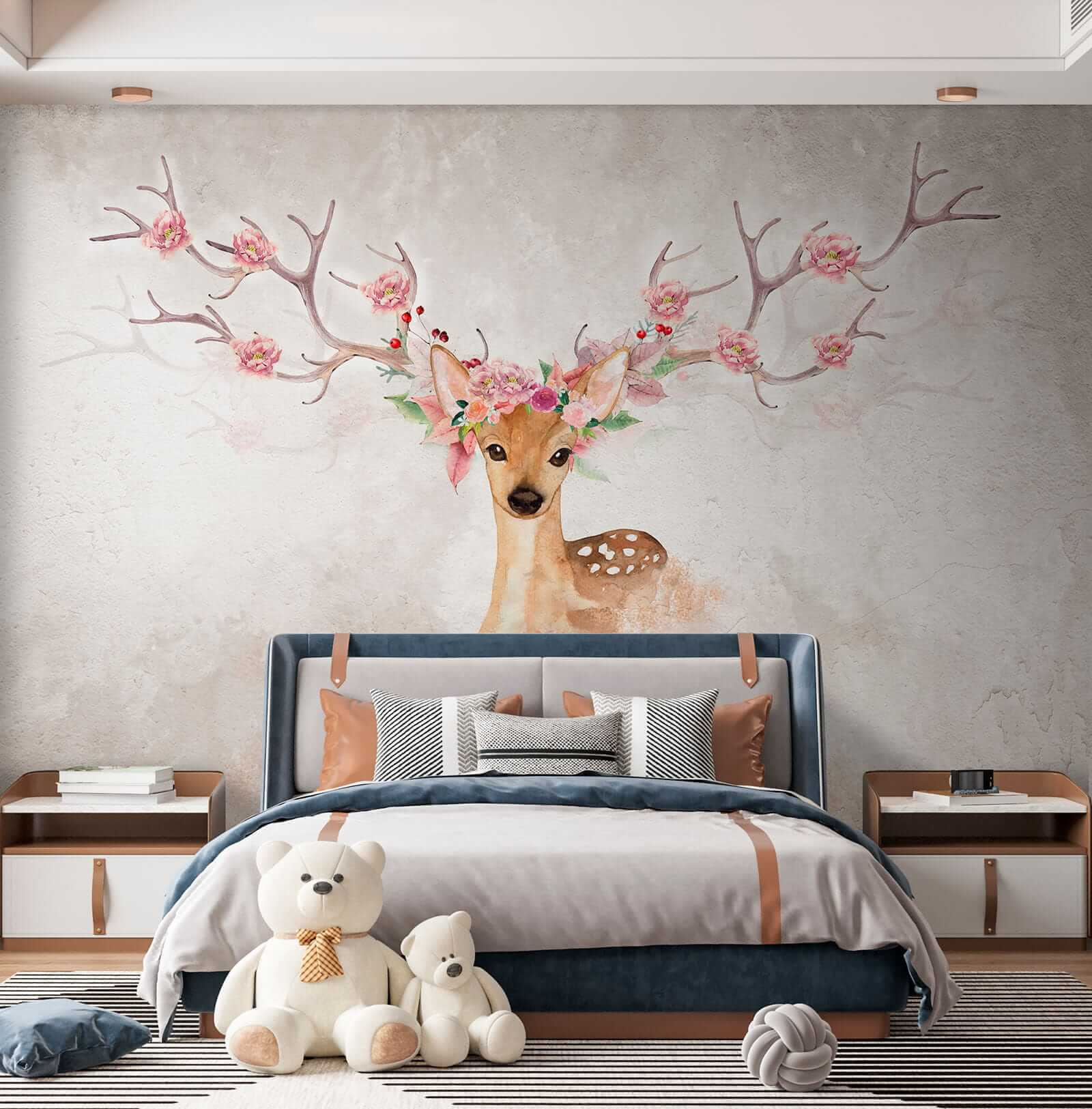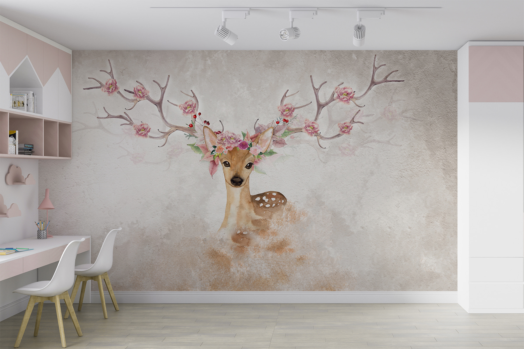 Transform any room into a whimsical wonderland with this charming watercolor mural featuring a deer adorned with a floral crown. It’s like a gentle hug from nature, perfect for cozy nurseries or playful spaces. Picture little ones feeling inspired by its serene beauty—imagine their delighted giggles and wide-eyed wonder every time they walk in! The soft, pastel hues invite peaceful vibes while adding a splash of personality to the walls. It’s a conversation starter too! Who wouldn’t want to discuss that fabulous deer with flowers? A fun twist for anyone who’s ever wanted a touch of the outdoors inside. Get ready for a mural that dances with dreams!