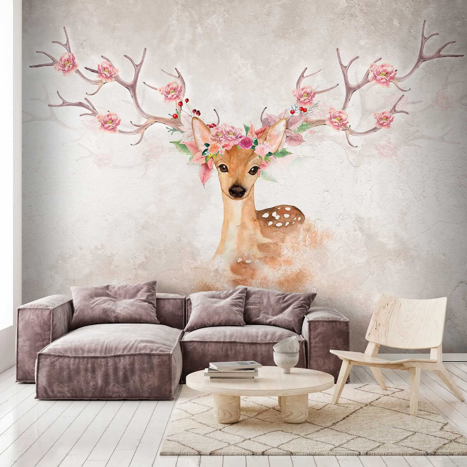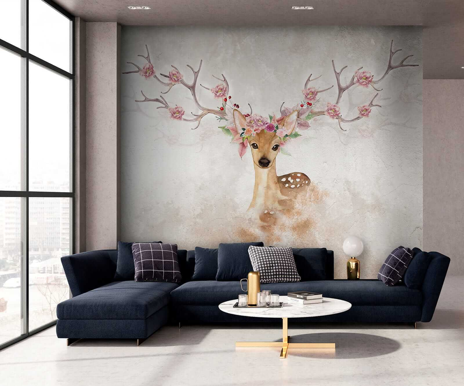 2 reviews for Wall murals Watercolor of a deer with flowers on its head