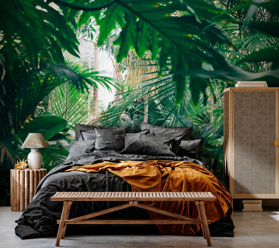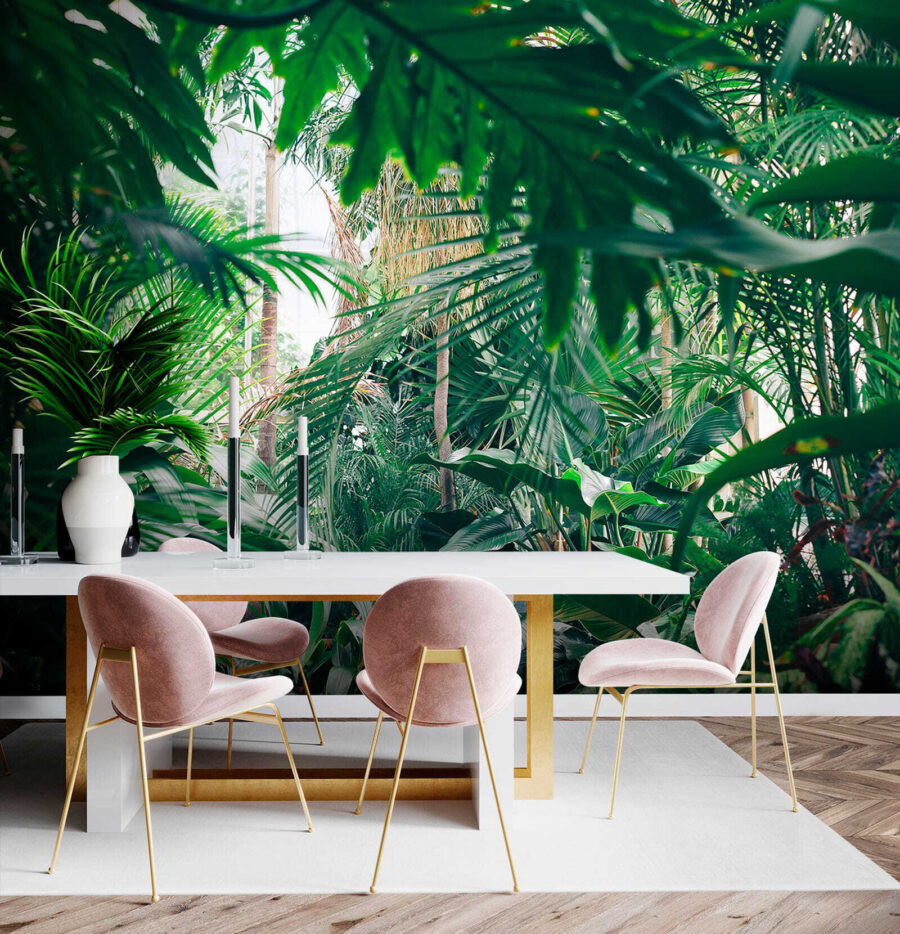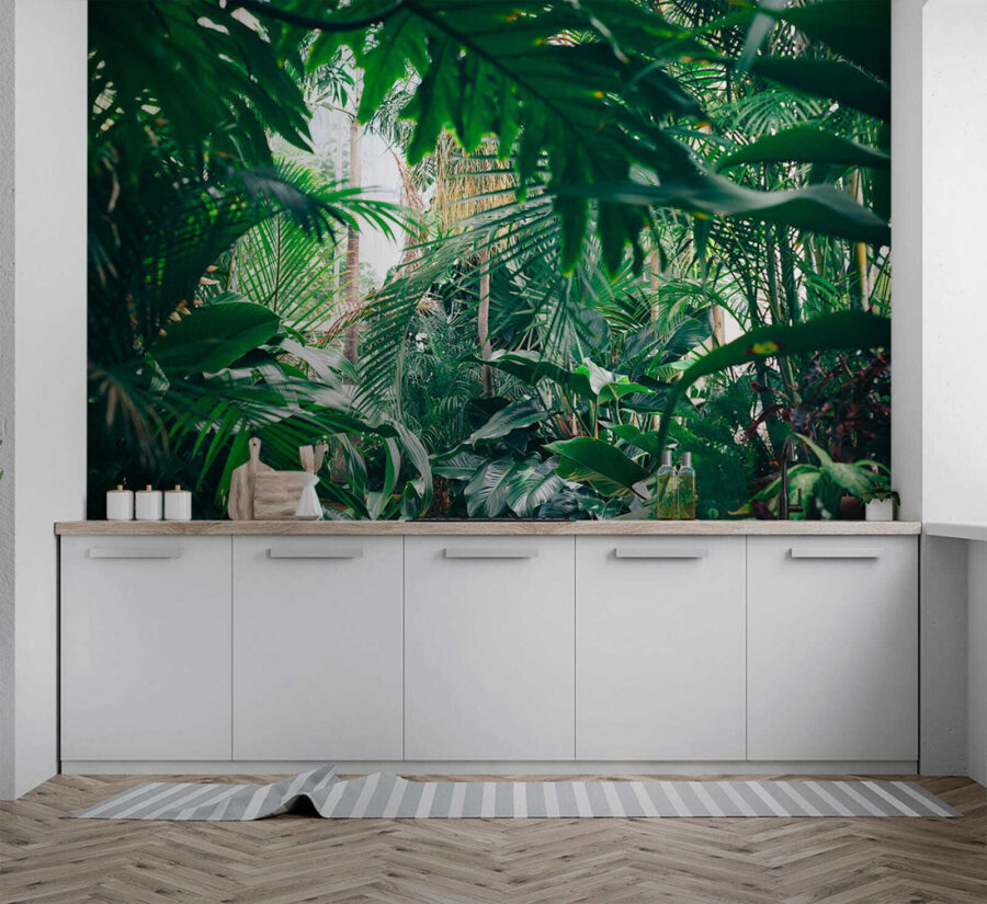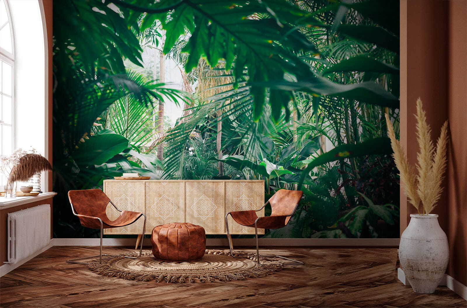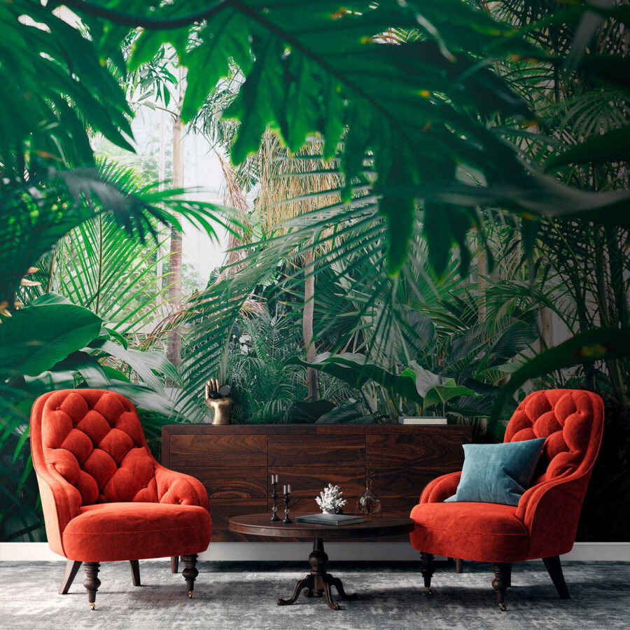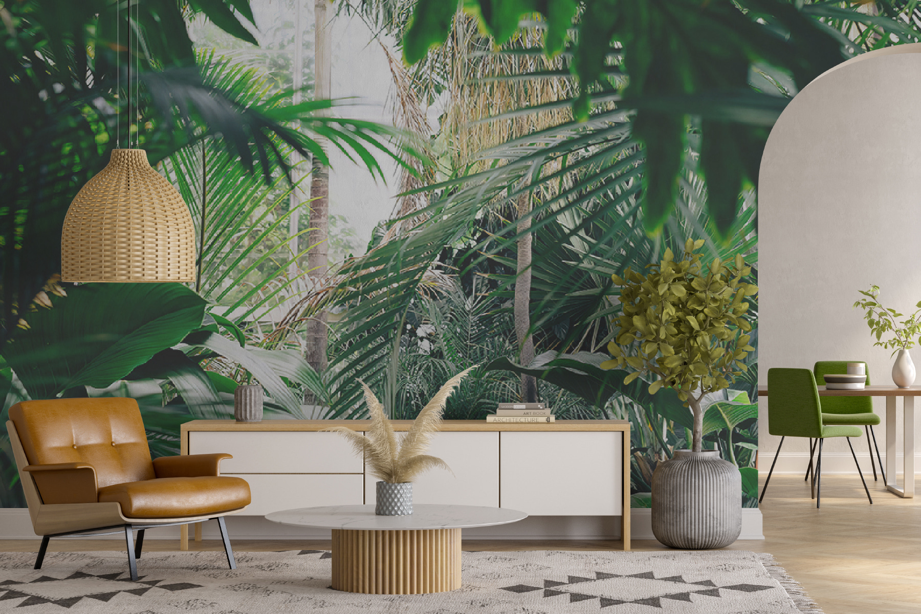 Transform your space into a serene jungle getaway with the lush jungle foliage mural. Imagine stepping into a vibrant forest, sunlight casting playful patterns on the rich greens. It’s like a mini-vacation, just without the long flight and questionable travel snacks. Whether in a cozy living room or a trendy café, this mural brings the outdoors inside—perfect for nature lovers or anyone needing a touch of calm. Feel those stress vibes melt away as you soak in the tranquil atmosphere. No need for a botanical degree, just sit back and enjoy the beauty!