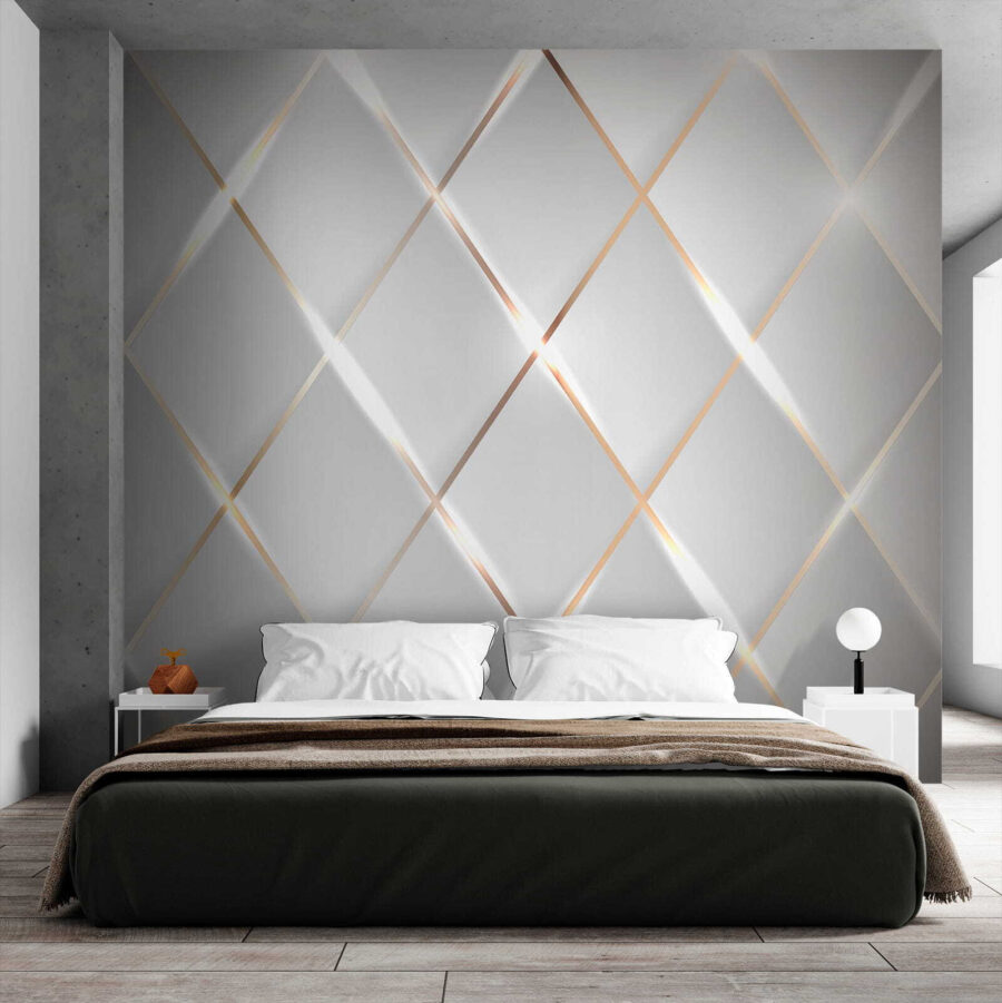 Transform any room into a stylish sanctuary with this mural that dances with light and symmetry. Imagine stepping into your space and feeling like you’ve walked into a shimmering art gallery, where every glance reveals a new dimension. The diamond-like patterns reflect soft, warm colors that play with natural light, making your walls come alive. It’s the kind of design that sparks conversation, maybe even a bit of envy from friends. Whether it’s a cozy living room or a chic office, this mural adds a touch of elegance without the fuss. Perfect for daydreaming and perfect backdrops for making memories. Your walls will thank you, and honestly, so will your guests.