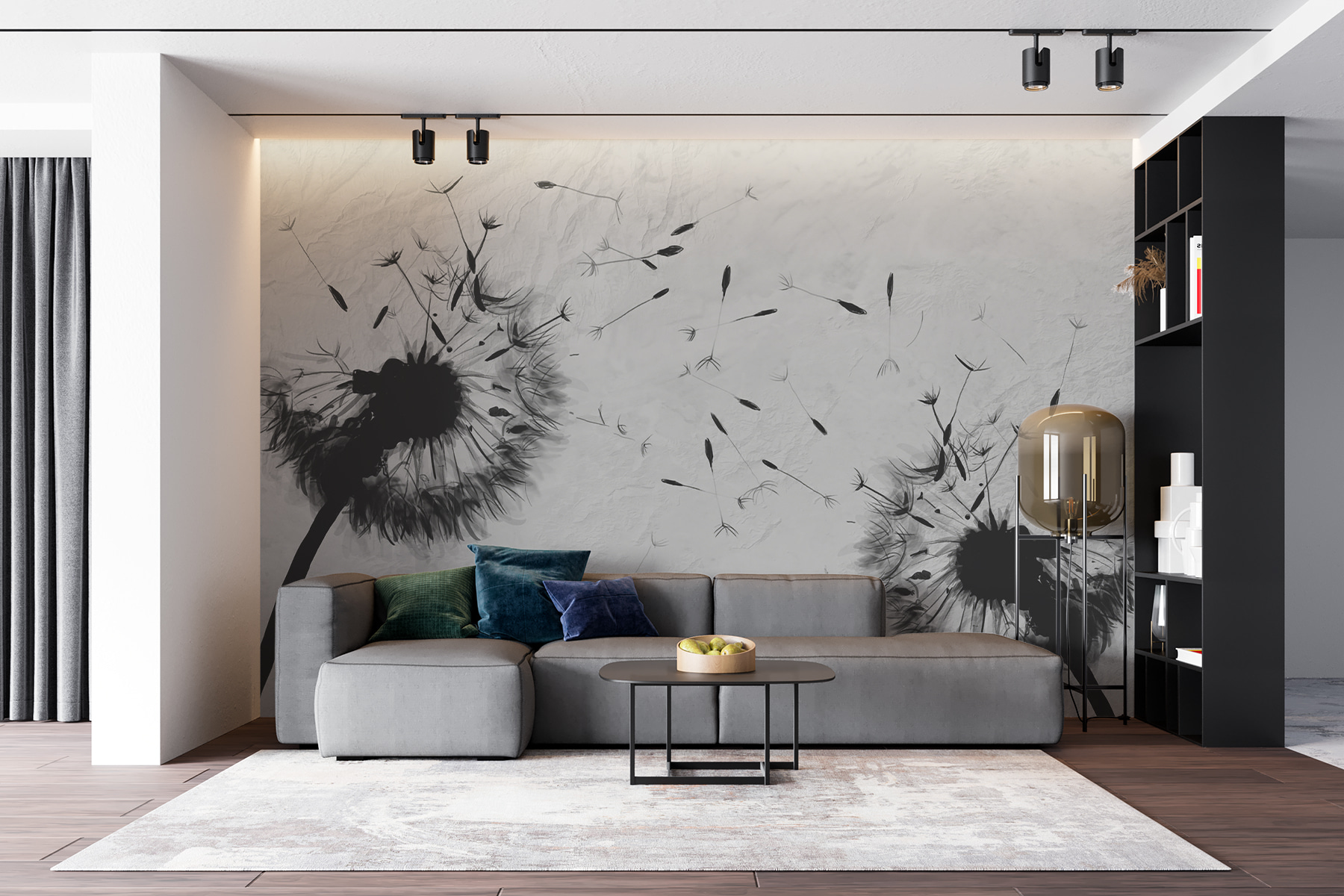 Transform any space with this stunning black-and-white dandelion mural. It’s got that elegant vibe, effortlessly bringing a touch of nature indoors without the pesky allergies! Picture standing in your living room, surrounded by soft wisps of dandelion fluff drifting across the wall—almost like they’re whispering secrets to the wind. This design not only pops visually but sparks conversations too. Friends will be intrigued, maybe even a little jealous! Perfect for a cozy reading nook or a chic dining area, it’s like having a piece of art that breathes life into your walls. And hey, who doesn’t love a little nature-inspired charm?