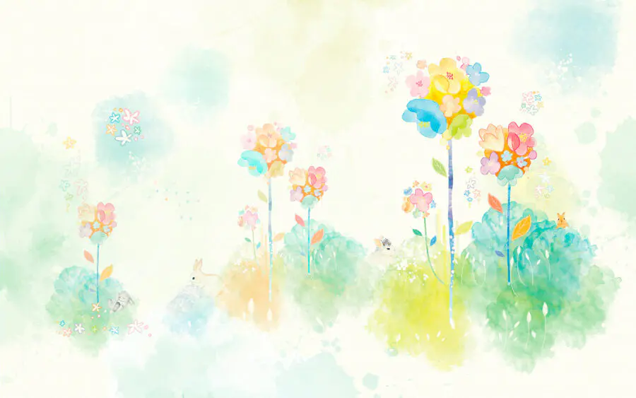 Transform your space into a delightful storybook with this enchanting watercolor mural featuring playful rabbits frolicking among whimsical flowers. The soft pastel colors dance across the wall, inviting a sense of calm and joy, like a gentle breeze on a sunny day. Imagine sipping your morning coffee, surrounded by this serene scene, where every glance feels like a little escape into nature. It’s like bringing a garden indoors, minus the dirt and the pesky bugs! Perfect for nurseries or cozy corners, this mural whispers “relax and enjoy,” making any room feel a bit more magical. It’s the sort of art that sparks joy—who wouldn’t want a sneak peek into this colorful world?