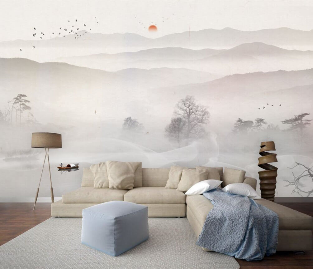 Transform any room into a serene escape with this stunning wall mural of a boat gliding across a foggy lake. Picture this: a gentle mist rolls off the water as the sun peeks through the mountains, casting a warm glow that instantly calms the soul. It’s like a breath of fresh air right in your living space.
