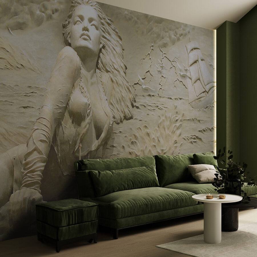 Transform your space with this stunning wall mural featuring a captivating statue of a woman. It’s like inviting a piece of art into your home that sparks conversation and catches every eye. Imagine walking into a room where she seems to whisper stories of adventure and ocean breezes. The 3D effect adds depth, making it feel as if she could step right out of the wall.