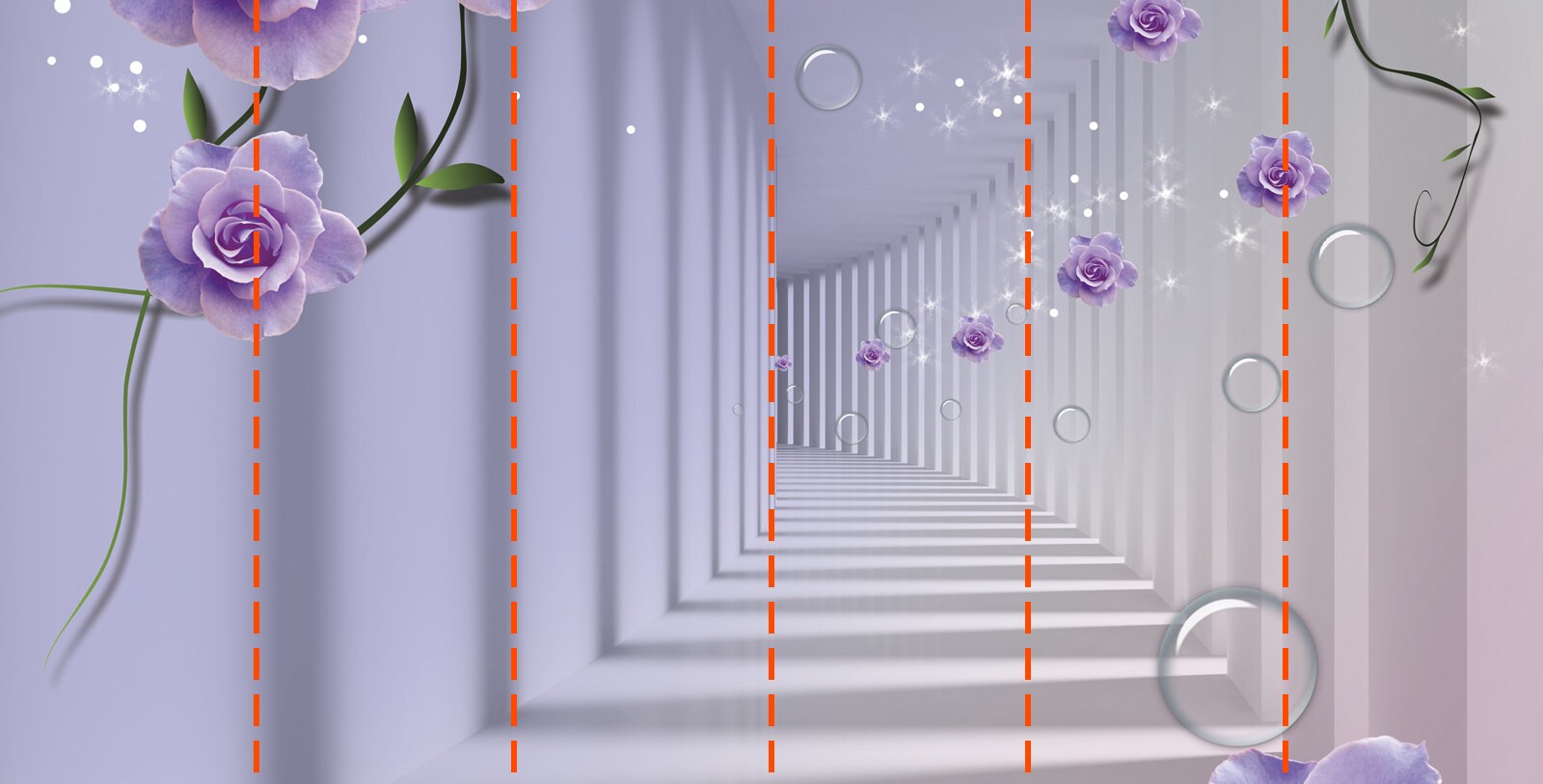 Wall mural Lavender roses in dreamy hallway