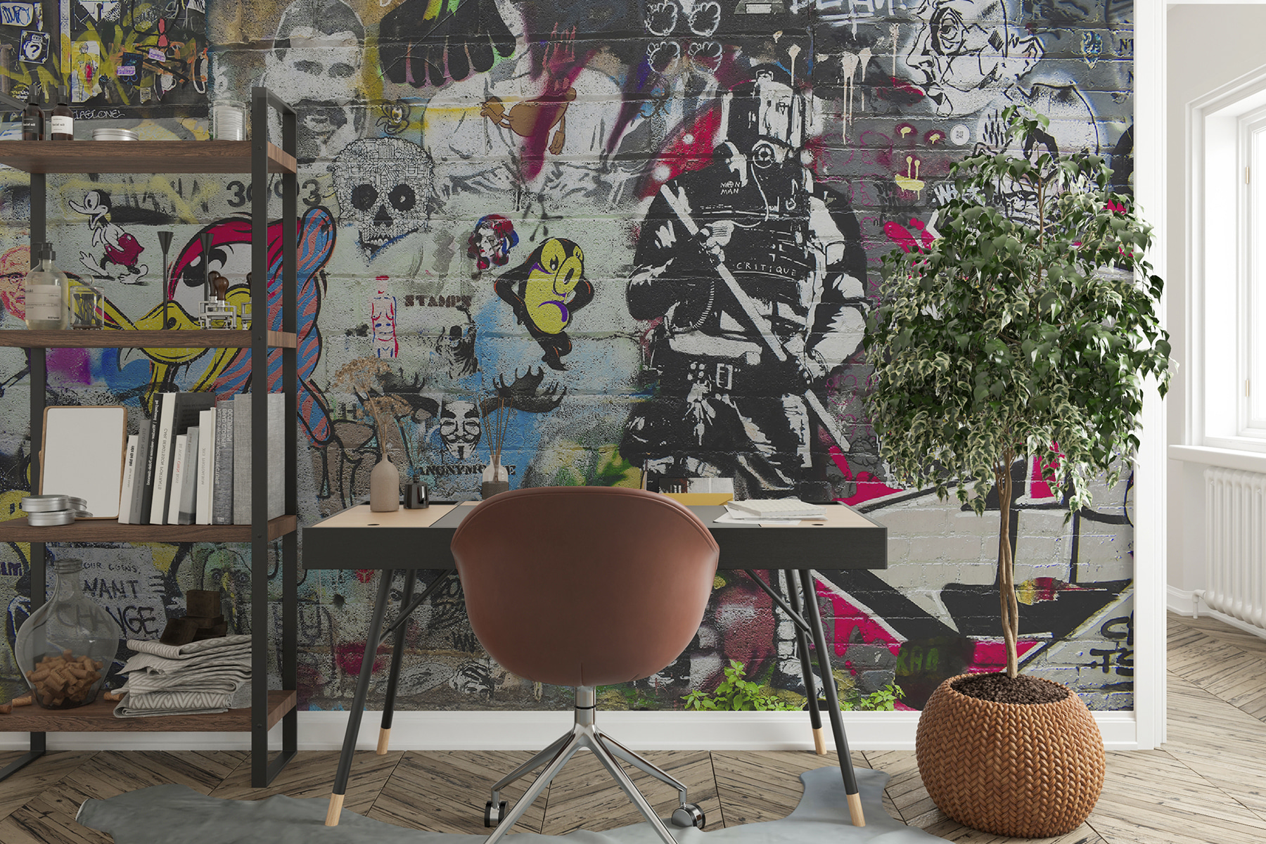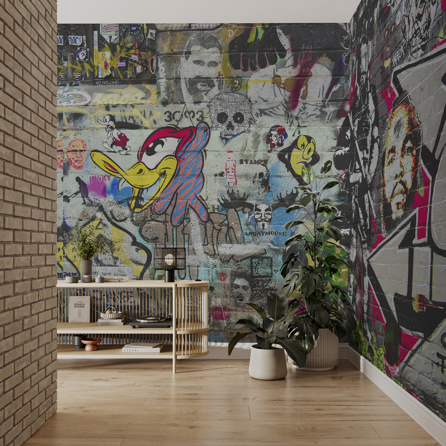 Elevate your space with this quirky wall mural showcasing a man with a beard and mustache, splashed vibrantly across a brick backdrop. It’s the kind of art that grabs attention and packs a punch—perfect for those who love to make a statement! Imagine walking into a room and being greeted by this bold character, instantly adding personality. It’s like having a conversation starter right on your wall. Plus, it fits into various styles, from eclectic to bohemian. Let your walls do the talking and create a buzz with this unique piece. It’s bound to spark joy or even a chuckle now and then!