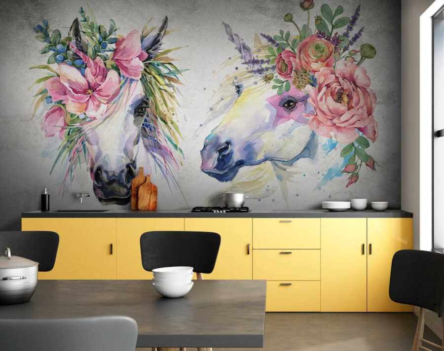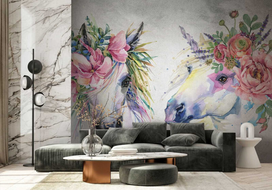 Transform any child’s space into a whimsical wonderland with this enchanting wall mural featuring horses dressed in floral crowns. It’s like inviting a piece of a fairy tale into the room—imagine giggles and daydreams swirling around. The vibrant colors bring life and a hint of magic, making it perfect for imaginative play or cozy bedtime stories. This mural doesn’t just decorate; it inspires dreams of galloping through fields of flowers. It’s a delightful touch that will have little ones and their friends grinning from ear to ear. Creating a joyful atmosphere has never looked this gorgeous!