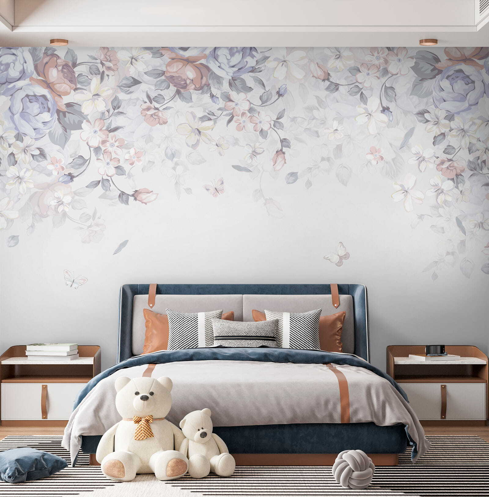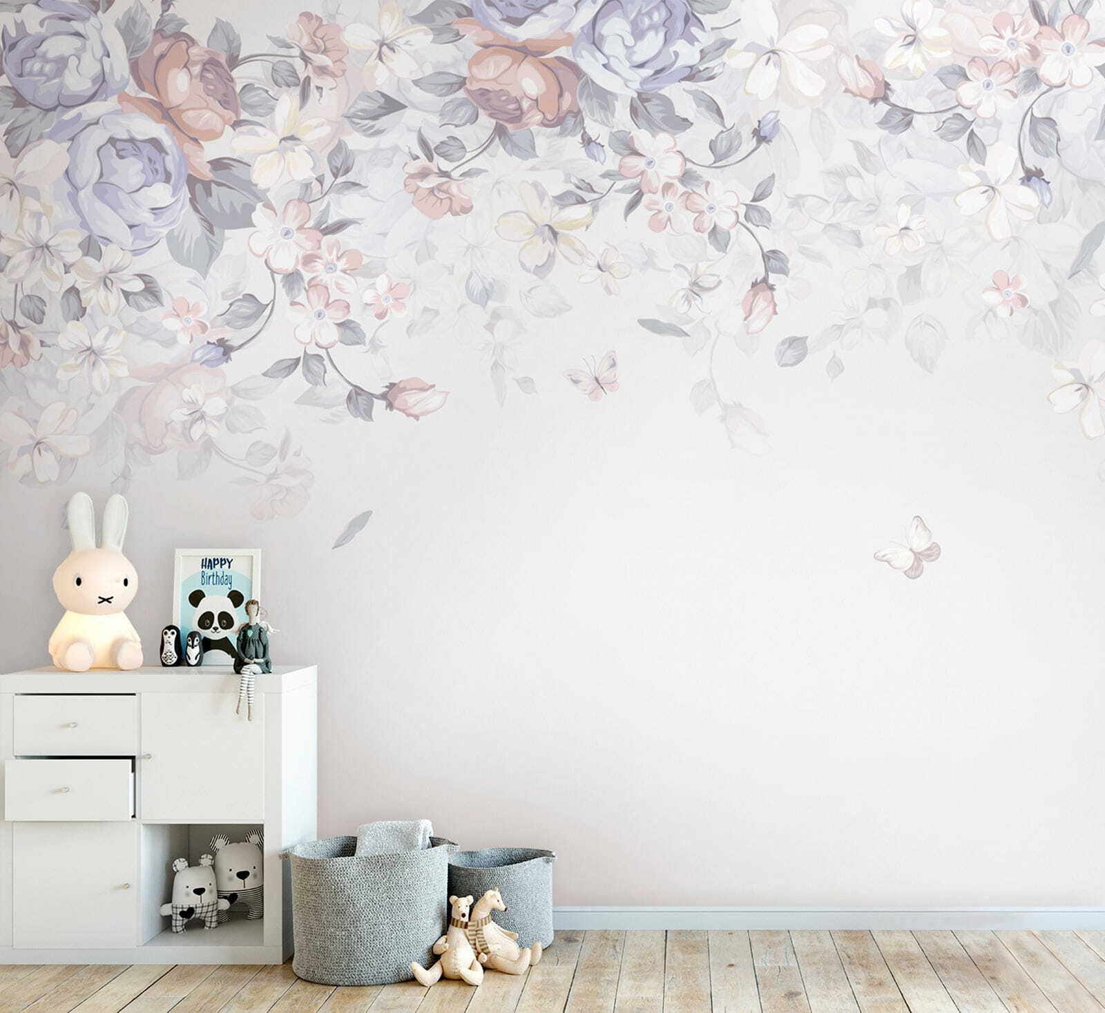 Transform a plain wall into a dreamy garden with this enchanting mural of pastel flowers and fluttering butterflies. Perfect for kids’ spaces, it adds a touch of whimsy and charm that sparks imagination. Picture a cozy reading nook or a play area where little ones can let their creativity take flight—it’s like a gentle hug for the room. The soft watercolor effect feels calm and serene, bringing a slice of nature indoors. And honestly, who wouldn’t want butterflies fluttering around their walls? It’s a little slice of magic for every home!