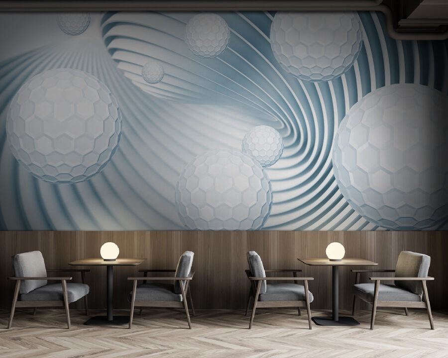 Transform a boring wall with this mural featuring playful white balls in a spiral. It’s like a gentle whirlpool of modern vibes, instantly adding a unique twist to any space. Imagine walking into a room and feeling that lightness wash over—like a breath of fresh air. The 3D effect has a way of sparking curiosity, making people pause and admire. Whether it’s a cozy living room or a creative office, this design offers a dash of whimsy without overwhelming the senses. Perfect for those who love a little fun in their decor, it’s sure to be a conversation starter. Just picture it—drinks with friends, and everyone can’t help but marvel at the mural. Add a splash of personality to your walls!