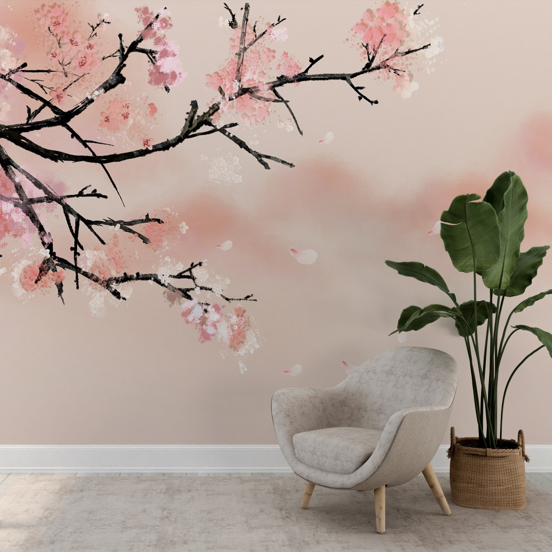 Imagine stepping into a room where gentle blossoms seem to sway in the spring breeze—this mural brings that dream to life. Soft pink petals drift lazily, while dark branches create a beautiful contrast against a warm backdrop. It’s like a cozy hug of nature right on your wall. Perfect for daydreaming or sipping tea, it transforms any space into a peaceful retreat. Whether it’s elevating a bedroom or livening up a reading nook, this design whispers comfort. Plus, it might just inspire you to slow down and appreciate those fleeting spring moments, or at least remind you of a day spent in the park. Don’t you just love that?