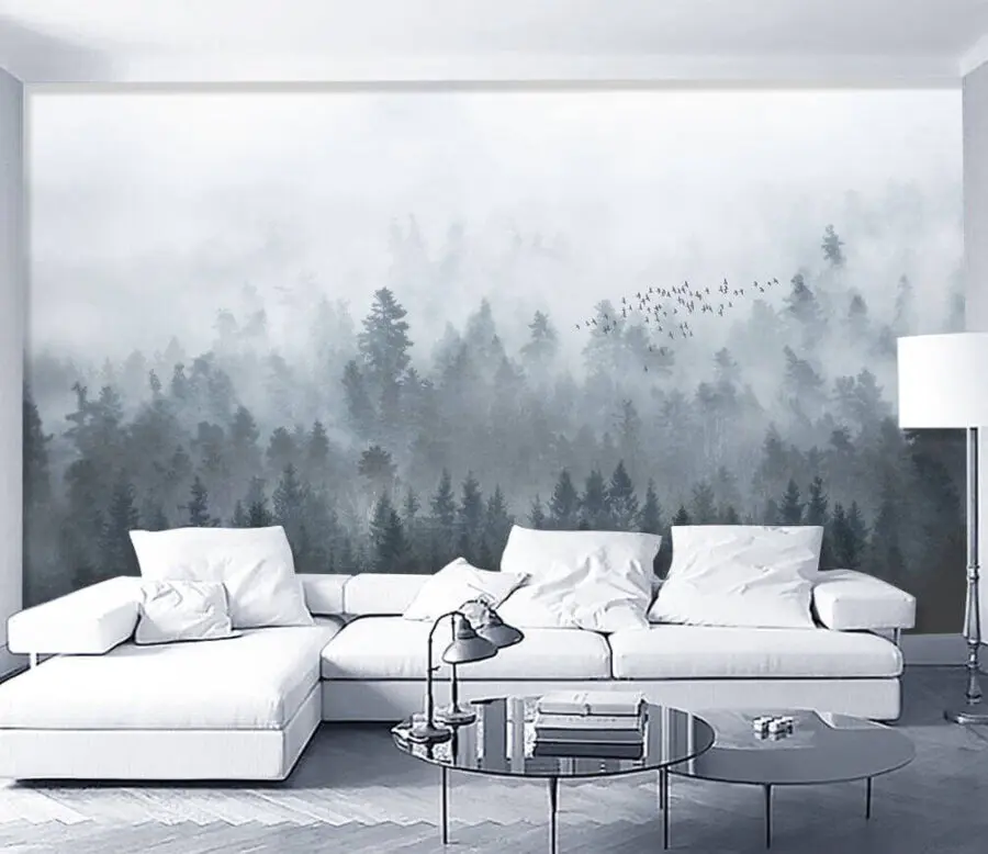 Transform any space into a serene escape with this stunning mural, “Group of Birds Flying Over a Forest.” Imagine waking up to a gentle forest mist and watching birds glide gracefully above the trees, their freedom whispering sweet nothings to your spirit. The soft watercolor tones create a calming atmosphere—perfect for unwinding after a long day. It’s like having a slice of nature right on your wall without the need for hiking boots or bug spray! Friends will want to nest in your cozy haven. So, why not add a touch of the wild to your walls?
