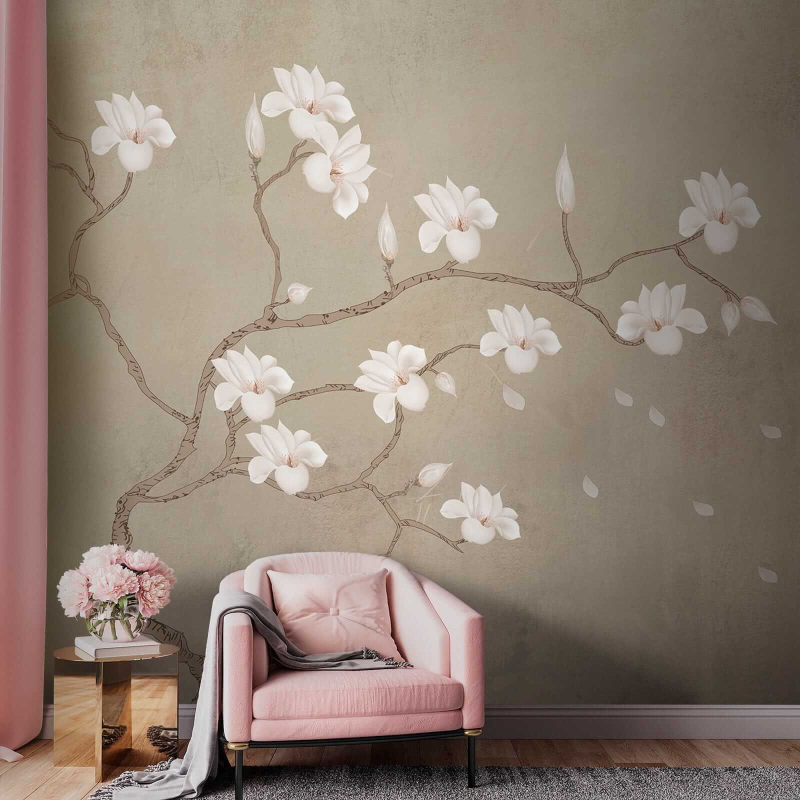 Transform any space with the enchanting “Delicate Blossoms on Twisting Branches” mural. Picture this: a serene background, featuring soft white blooms that seem to dance gracefully on their branches. It’s like bringing a slice of nature indoors—perfect for those moments you want to feel calm. Imagine sipping tea, surrounded by these elegant flowers, as if they’re whispering secrets from a spring morning. The gentle colors blend effortlessly with any decor, giving off cozy vibes while adding a touch of sophistication. This mural doesn’t just hang on a wall; it transforms a room into a tranquil retreat. Plus, who needs a garden when you can have a perpetual spring? Perfect for relaxing, reading, or maybe even daydreaming!