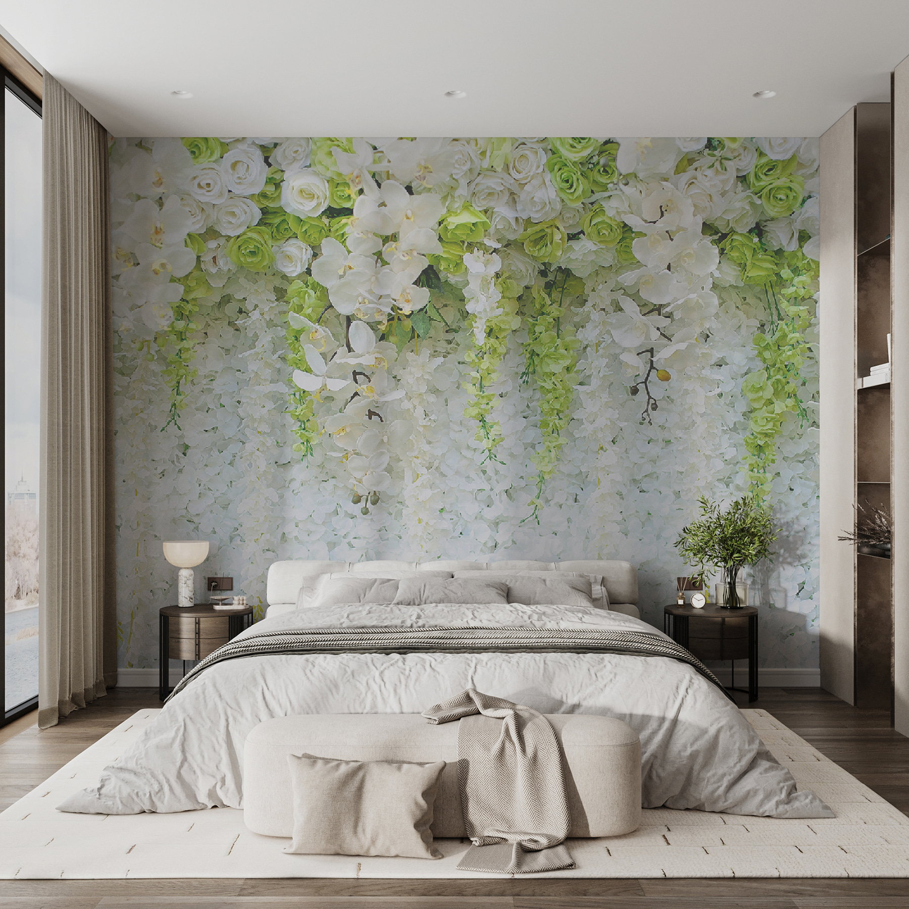 Transform any room into a serene garden oasis with this stunning wall mural featuring a delightful mix of white and green flowers. Imagine waking up every day to blooms that seem to dance in the light—each petal whispers spring, even if winter’s still hanging around outside. It’s like having a garden party on your wall, minus the insects and watering can. Perfect for a cozy reading nook or a bright hallway, this mural creates a peaceful vibe that just begs for a cup of tea and a moment of zen. Who knew wall decor could be so refreshing? Add a splash of nature and let your walls do the talking!