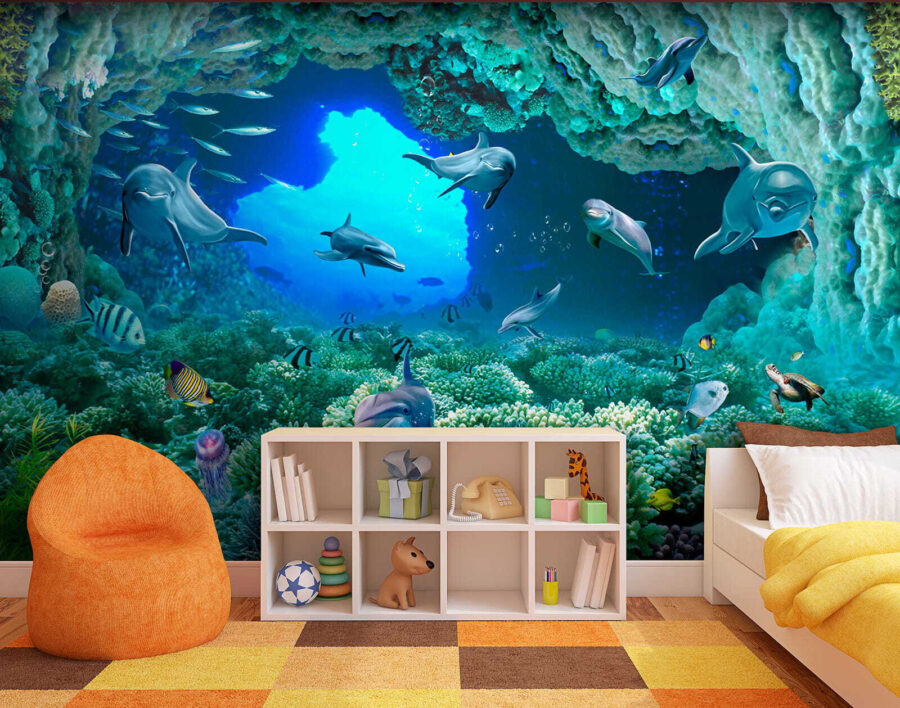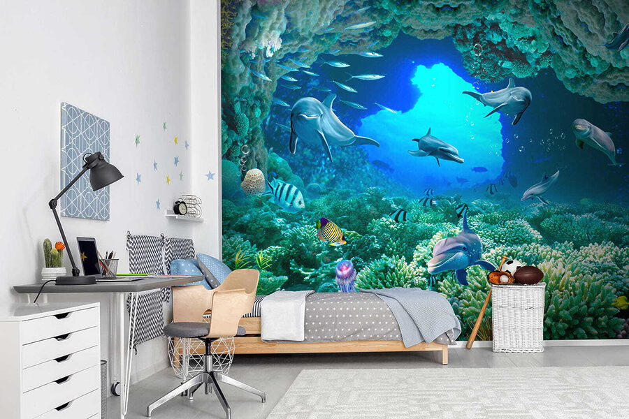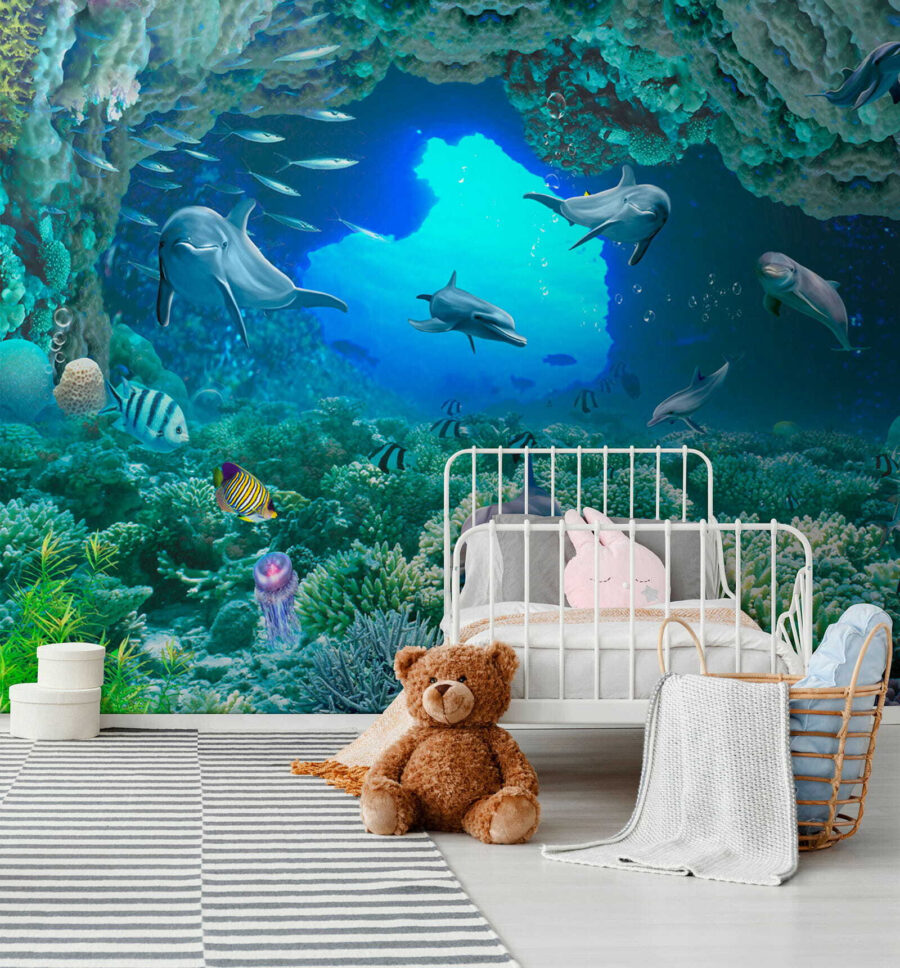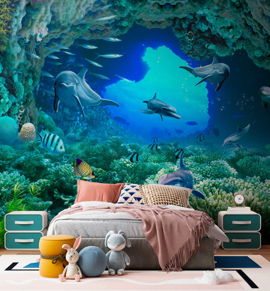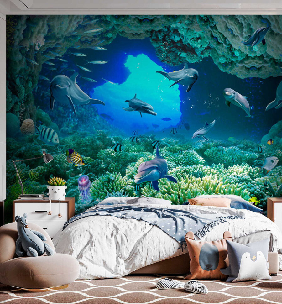 Dive into a slice of underwater paradise with this vibrant wall mural featuring dolphins dancing through crystal-clear waters. Imagine waking up and feeling like you’re perched right on the edge of a sunlit ocean, surrounded by lush coral reefs and friendly fish—talk about a morning boost! Every glance at this mural brings a little ocean breeze into your space. It’s perfect for a beach-themed room or even a cozy reading nook. Plus, who wouldn’t want a playful dolphin or two keeping them company? It’s like having a mini-vacation right on your wall—no sunscreen required!