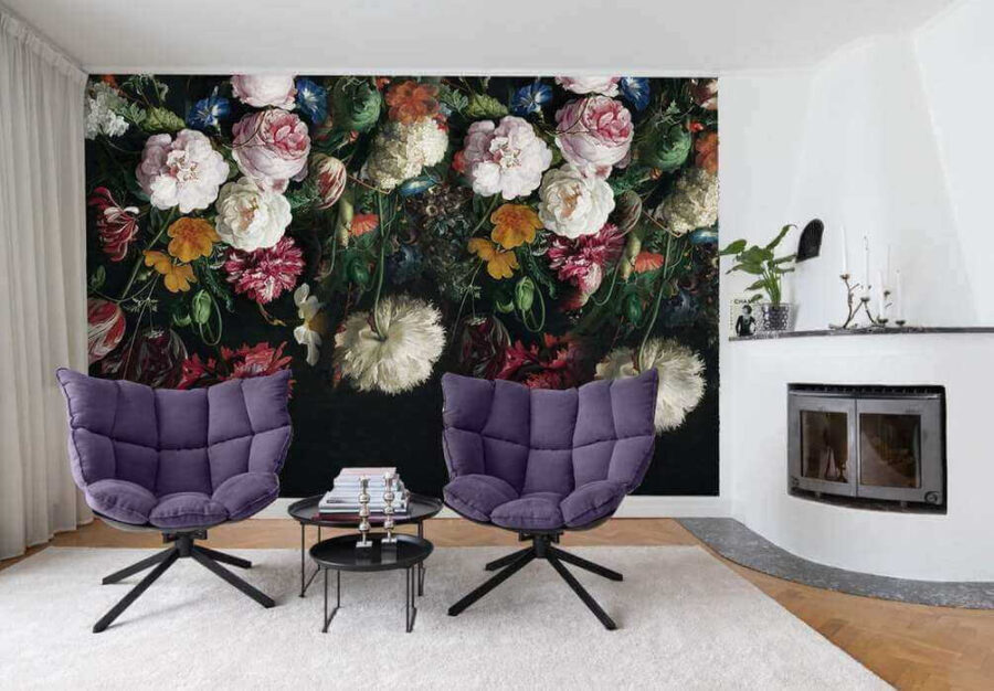 1 review for Wall murals Vivid blossoms cascade in darkness