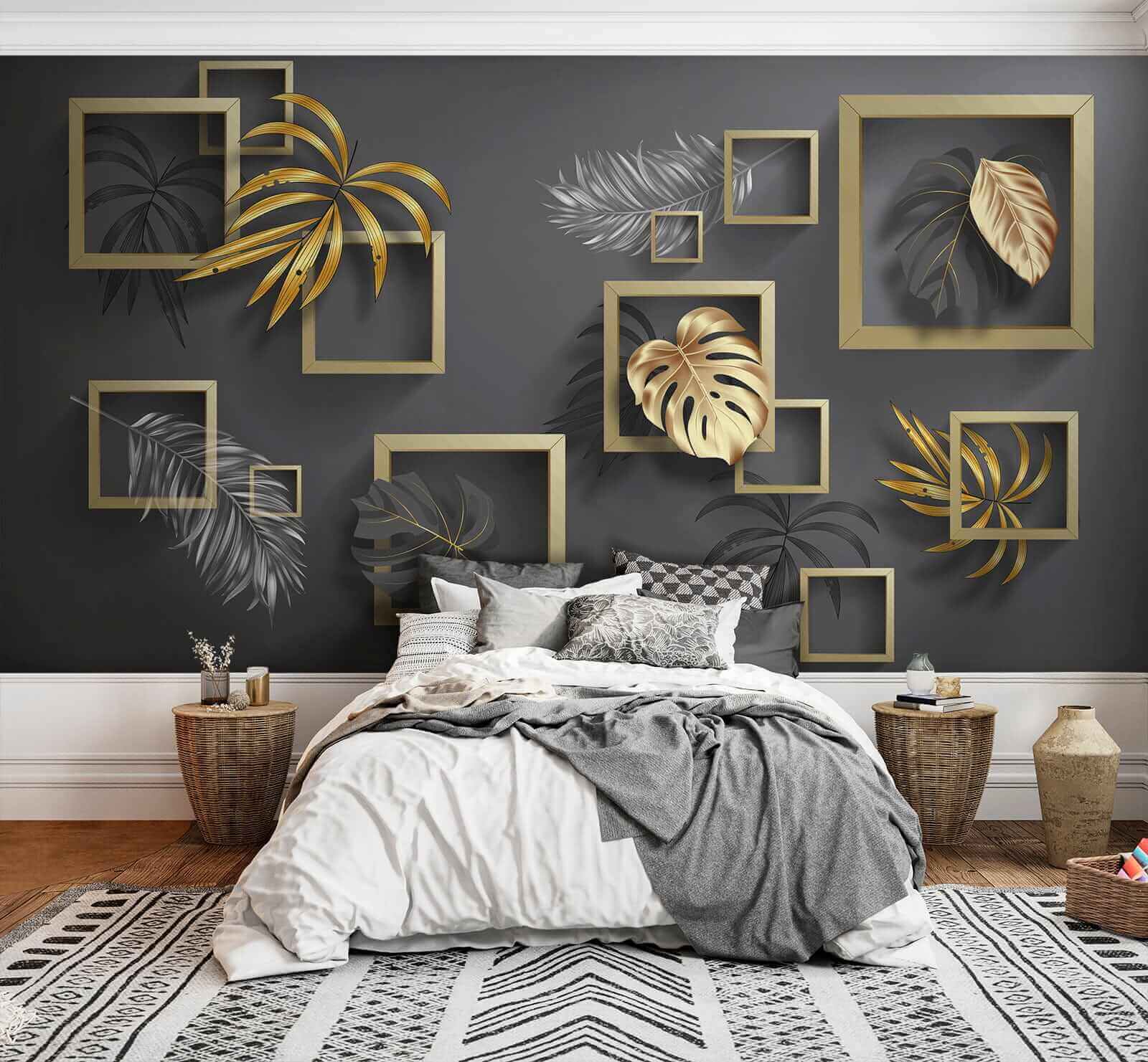 Transform any space with this eye-catching wall mural featuring elegant foliage framed in playful arrangements. Picture it in a cozy nook or a stylish living room—imagine sipping coffee while getting lost in those exquisite details. The artwork brings an enchanting vibe, almost as if nature decided to pop in for a visit. It’s a fabulous conversation starter, too—guests won’t be able to resist commenting on its charm. Brighten up your walls and let this mural inspire warmth and creativity, making your home feel fresh and inviting.