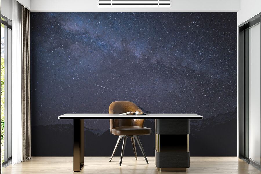 Transform your space into a cozy mountain retreat with this stunning wall mural featuring snowy peaks under a star-speckled sky. Imagine sitting back with a hot cup of cocoa, staring at the serene view that invites you to breathe deeply and unwind. There’s something magical about the contrast of the cool, calm mountains against the vast night sky, right? Perfect for living rooms, bedrooms, or even those quiet nooks where creativity blossoms. Just picture friends marveling at your stylish choice and saying, “Wow, this feels like a getaway!” Who wouldn’t want that?