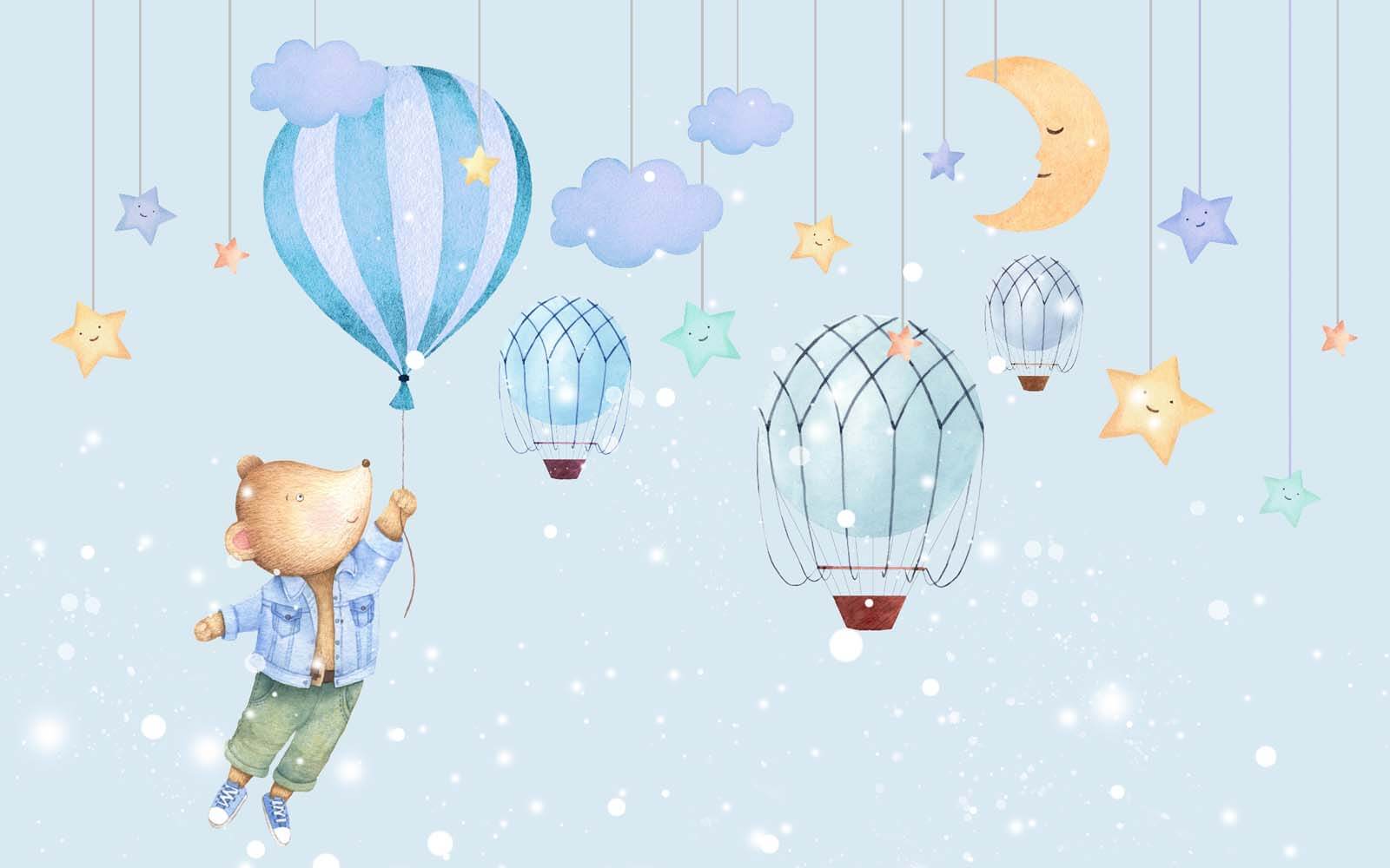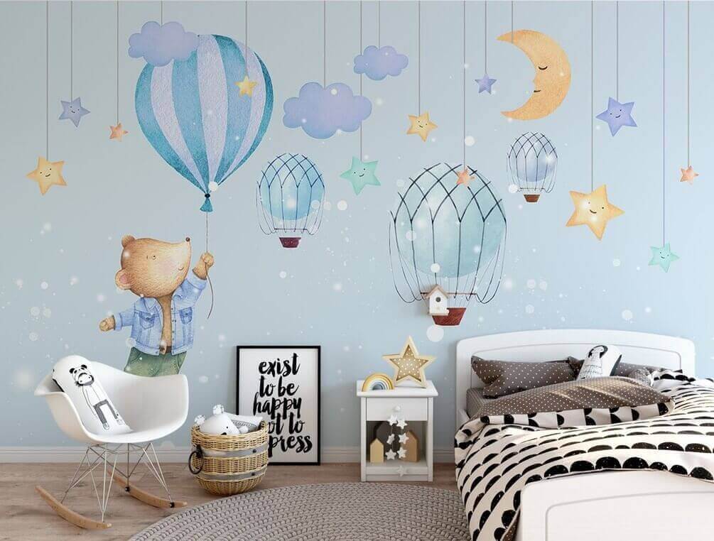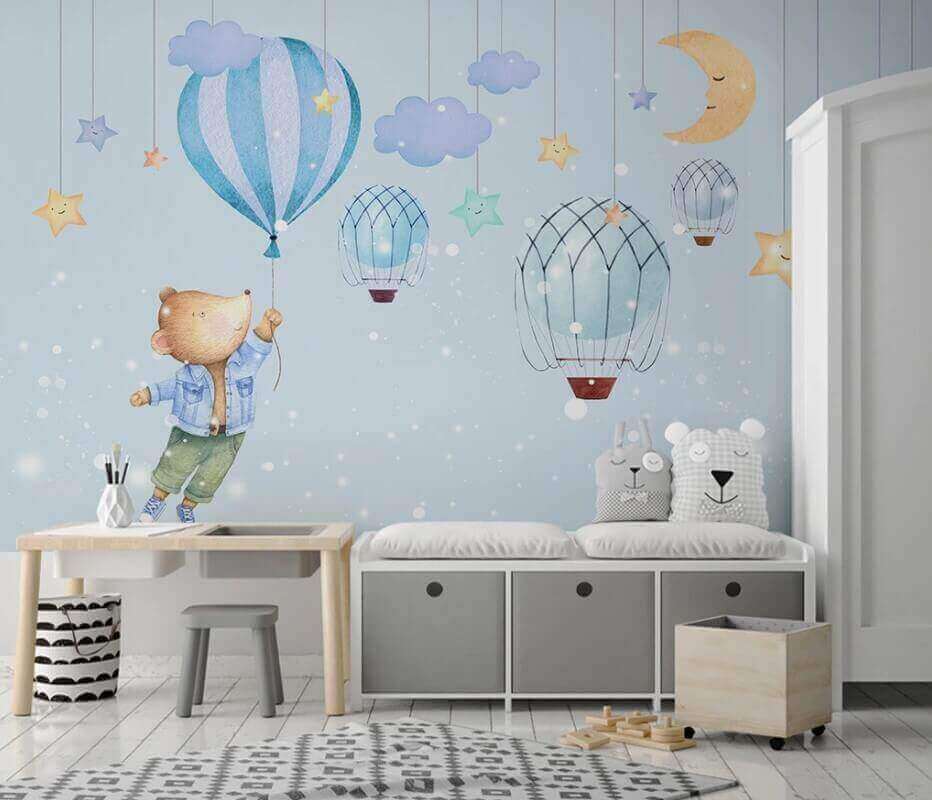 Transform any space into a whimsical wonderland with this delightful wall mural featuring a charming cartoon bear joyfully holding onto a balloon. Picture this: a little one gazing in awe as the bear floats above a dreamy sky filled with smiling stars and cute hot air balloons. It’s the kind of wall art that ignites imagination and invites adventure—all while adding a splash of color and cheer. Ideal for nurseries, playrooms, or any cozy corner that could use a sprinkle of joy. Can you just imagine storytime under this mural? It’s like a warm hug for the walls! So, why not let this bear take you on a little journey?