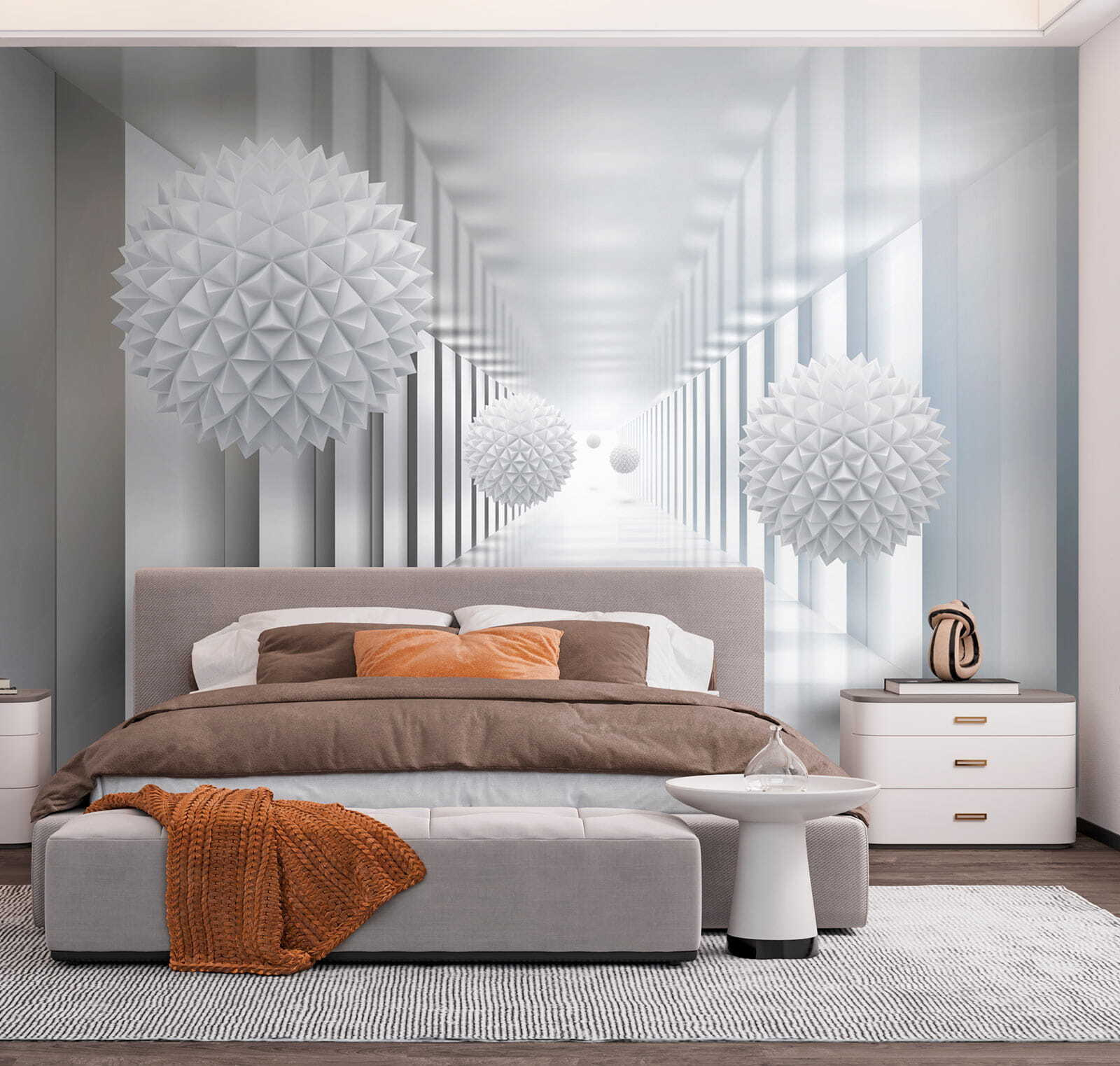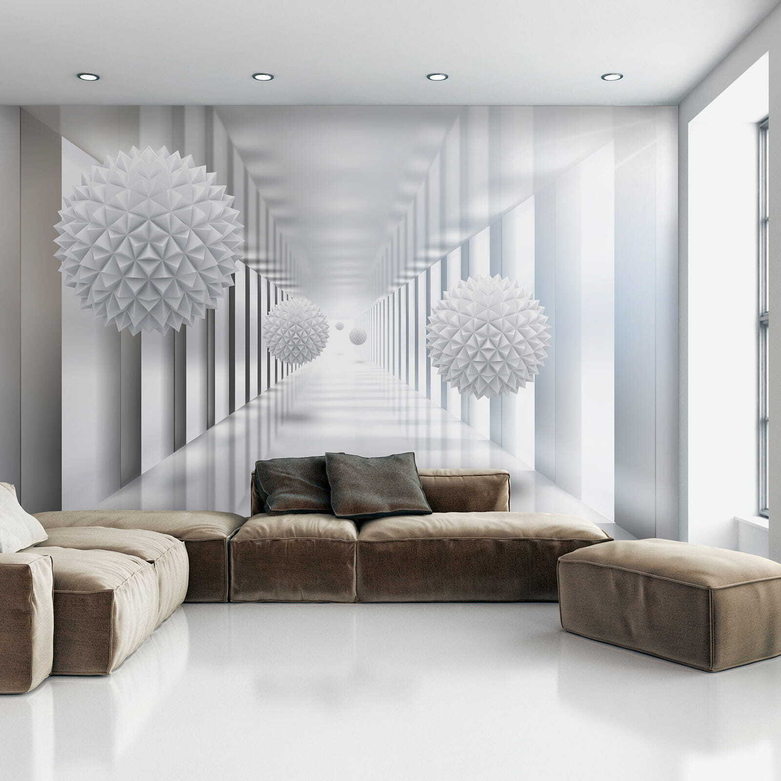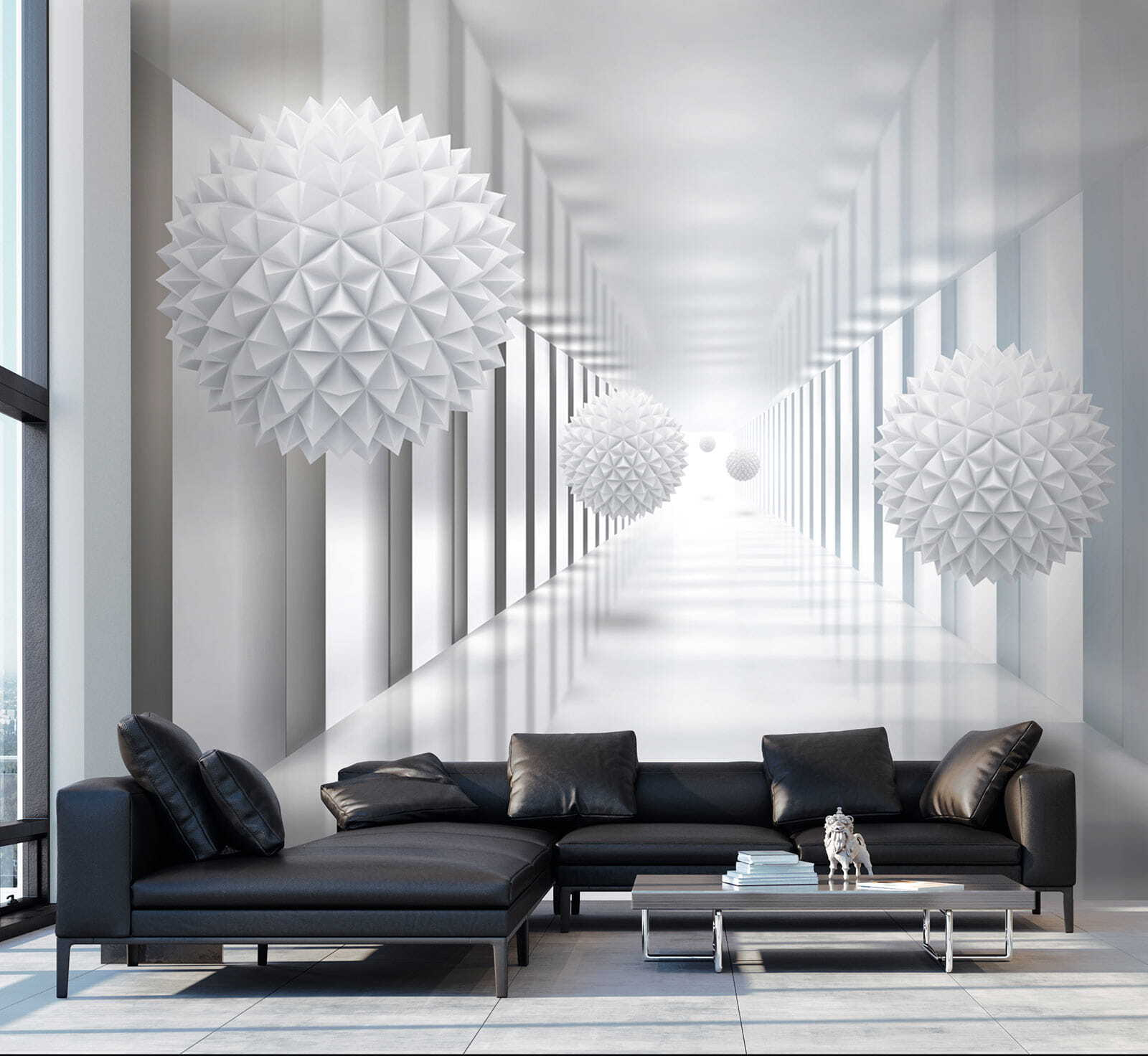 Step into a world where simplicity meets intrigue with the “Wall Murals White Sphere with Triangles.” This mural feels like a breath of fresh air, elevating your space into a serene oasis. The crisp white spheres floating in a sleek, light-filled hallway create a sense of depth that’s almost hypnotic. It’s perfect for anyone who loves modern vibes or just wants a touch of whimsical elegance. Imagine sipping coffee in your newly transformed room, with every glance making you feel a bit like you’re floating in a dreamy landscape. Talk about instant chic! Plus, it’s a great conversation starter—guests will question if you’ve got a personal Picasso hidden away. Your walls will thank you, and so will your sanity!