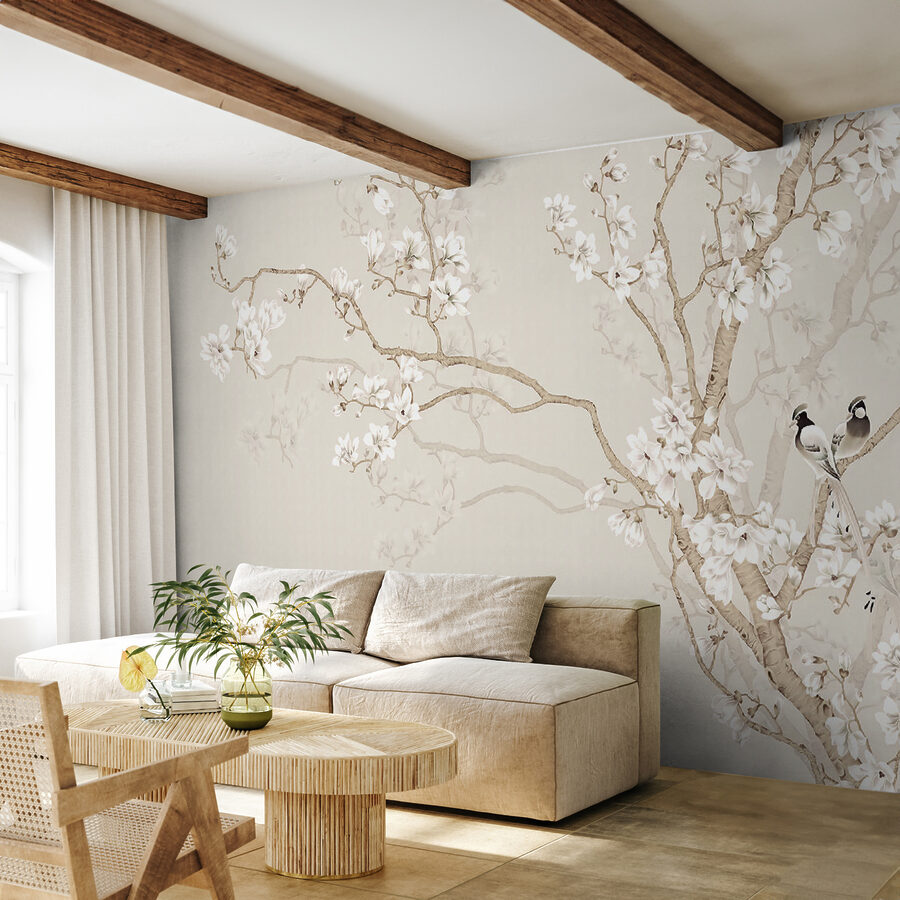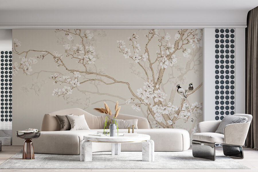 Transform any space into a serene retreat with this captivating mural of birds perched on blooming branches. Imagine stepping into your room and feeling like you’re surrounded by nature, right in your own home. The delicate flowers and gentle hues create an atmosphere that’s both calming and refreshing. It’s perfect for sipping your morning coffee while daydreaming. And let’s be real—who doesn’t want a little slice of the outdoors indoors? Just make sure the birds don’t start chirping too loudly during your Zoom call. This mural blends beautifully with any décor, adding a touch of elegance that feels just right.