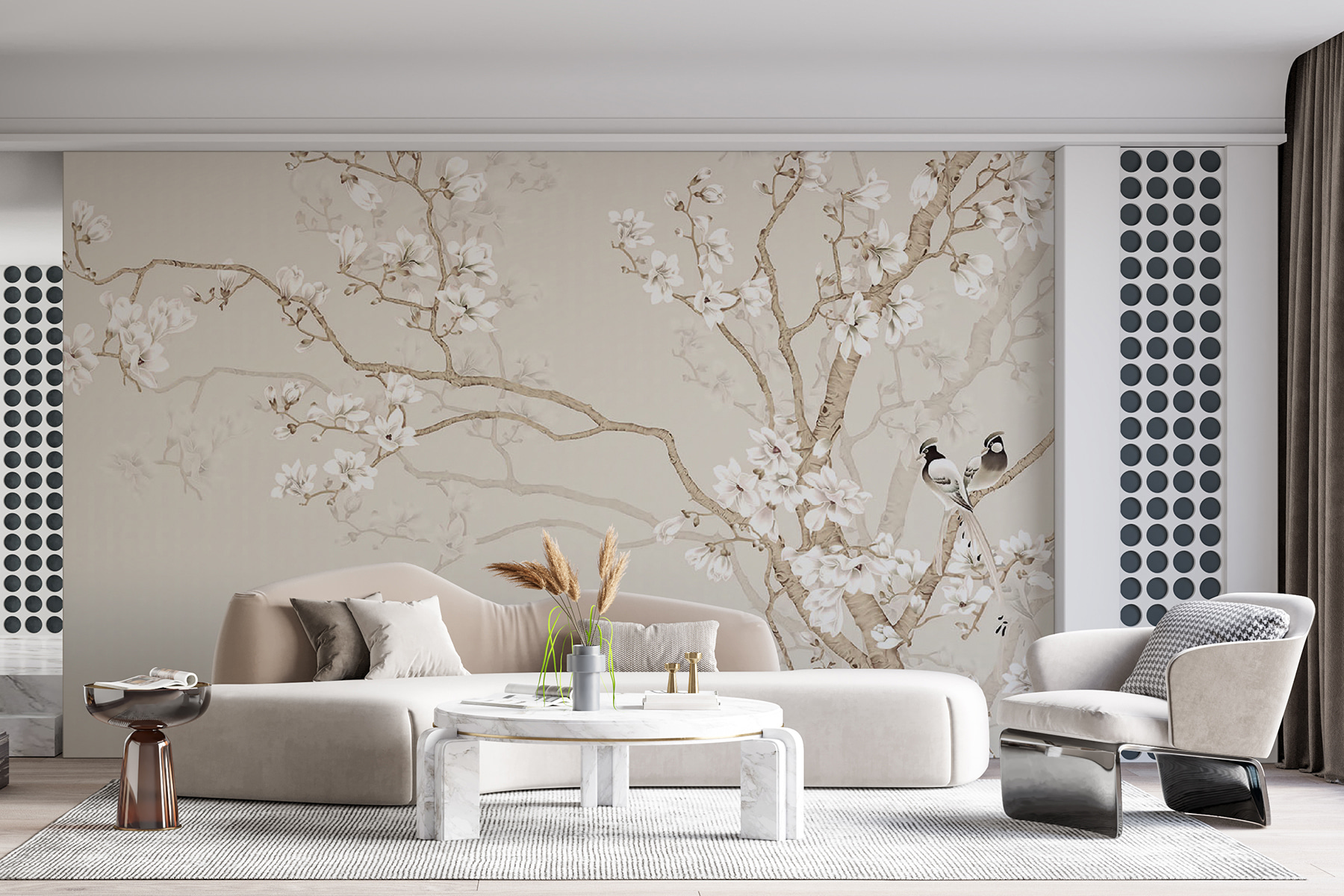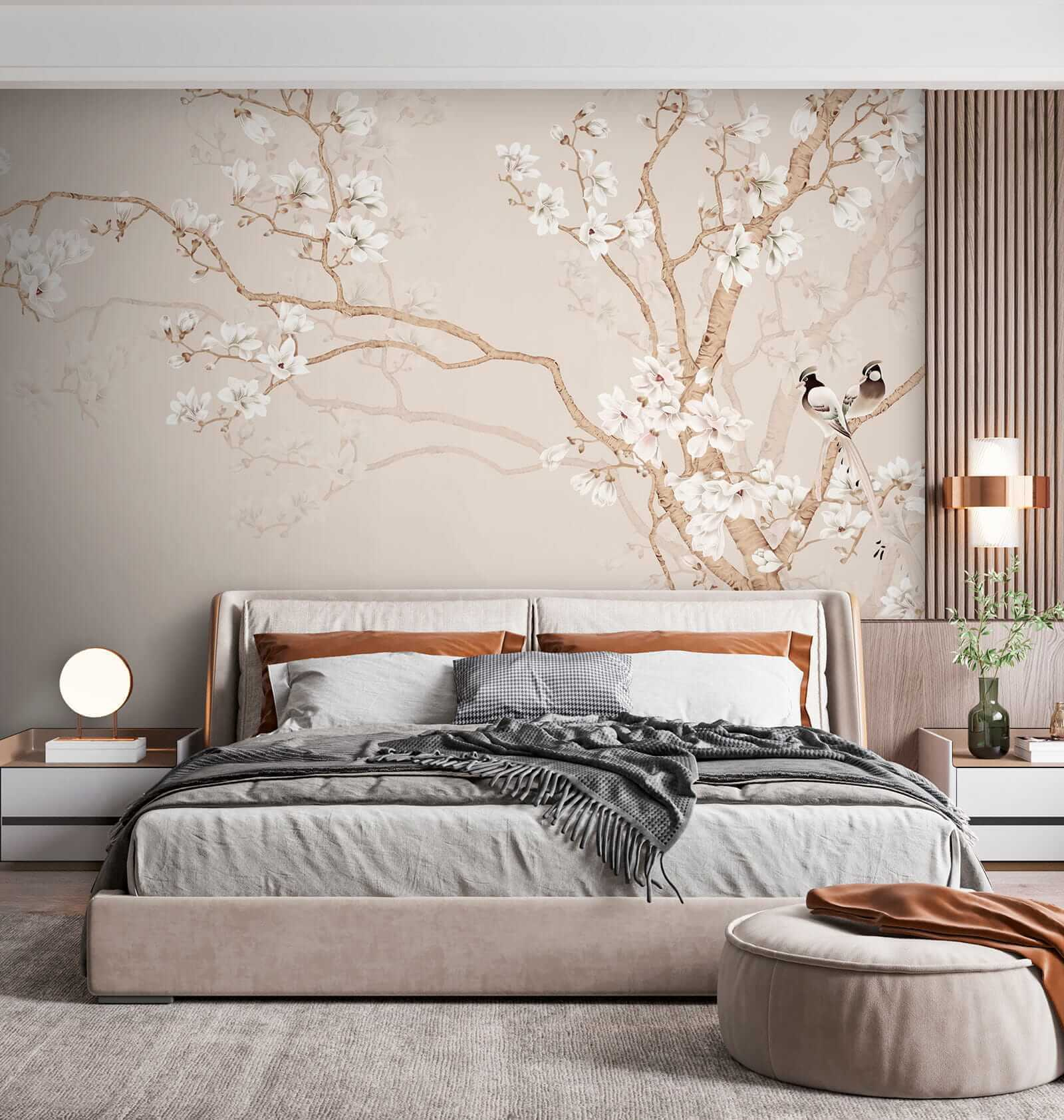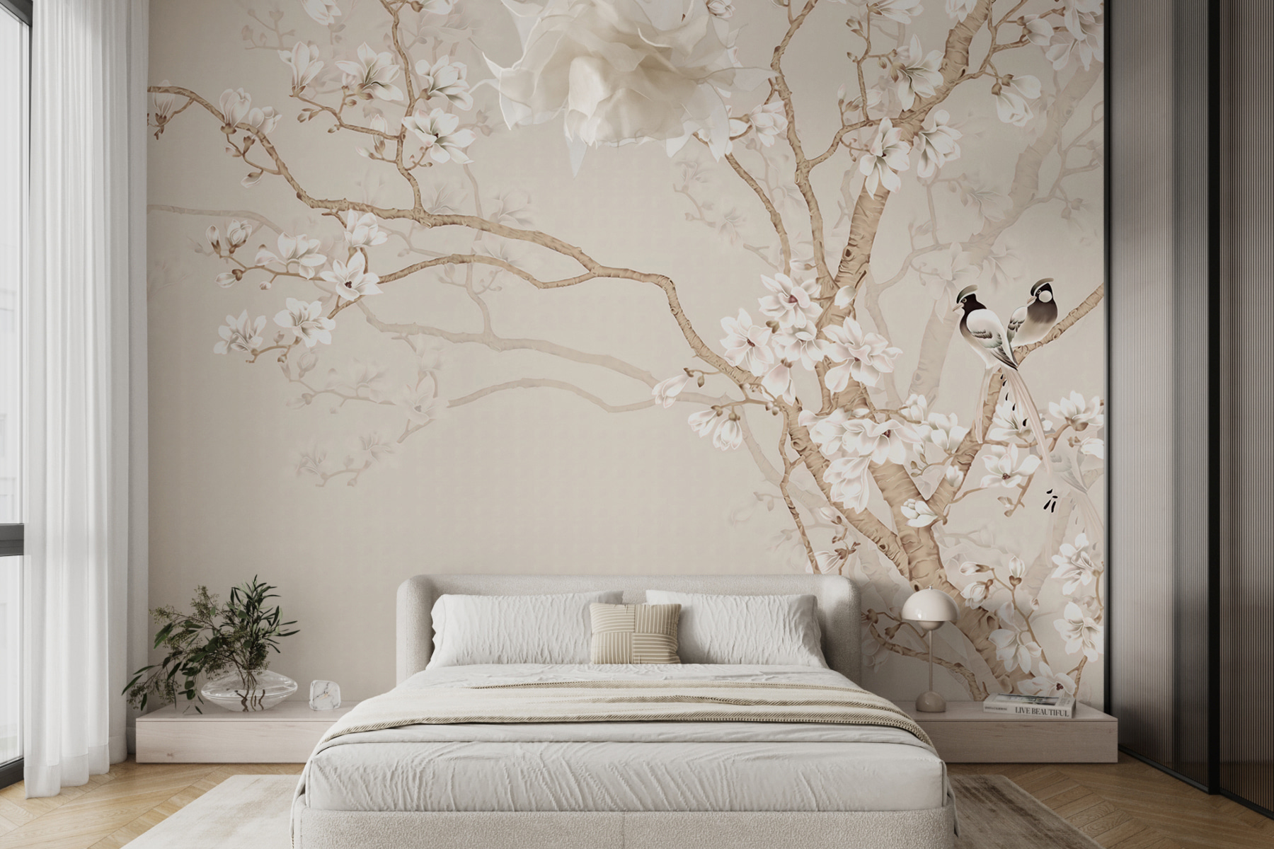 Transform any space into a serene retreat with this captivating mural of birds perched on blooming branches. Imagine stepping into your room and feeling like you’re surrounded by nature, right in your own home. The delicate flowers and gentle hues create an atmosphere that’s both calming and refreshing. It’s perfect for sipping your morning coffee while daydreaming. And let’s be real—who doesn’t want a little slice of the outdoors indoors? Just make sure the birds don’t start chirping too loudly during your Zoom call. This mural blends beautifully with any décor, adding a touch of elegance that feels just right.