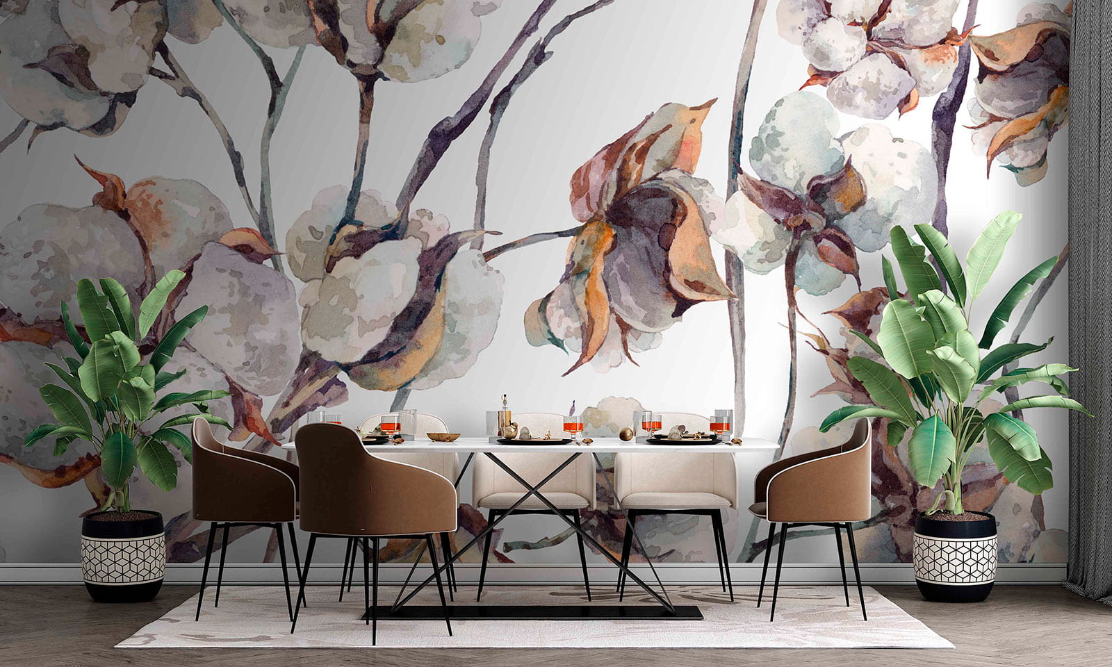 Transform your walls with this delightful mural featuring a charming pattern of cotton flowers. It’s like bringing a whimsical garden indoors, without the dirt! The soft whites and warm earthy tones create a cozy vibe, making any space feel inviting. Imagine waking up to this lovely design—sunlight streaming in, a gentle reminder of nature’s beauty. Perfect for a living room, bedroom, or even a cozy nook, this mural adds both character and a touch of laid-back elegance. It’s floral charm that whispers comfort, beauty, and a hint of nostalgia. Perfect for those who love to bask in a bit of flora every day!