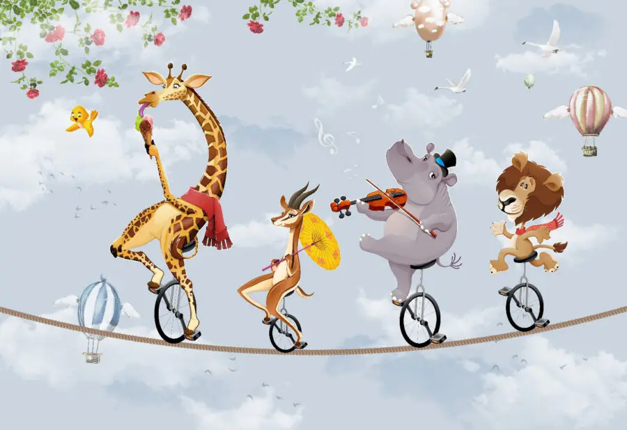 Bring a burst of whimsy to your child’s space with this mural featuring a hippo playing the violin—it’s as charming as a cozy storybook! Imagine the giggles and joy as little imaginations soar, picturing this delightful hippo performing for an audience of colorful critters. Perfectly suited for nurseries or playrooms, the mural transforms any wall into an enchanting adventure. There’s a sweet kind of magic in watching kids’ eyes light up as they enter a world where animals ride unicycles and play music. It truly feels like stepping into a fun fairytale, where every glance brings a smile!