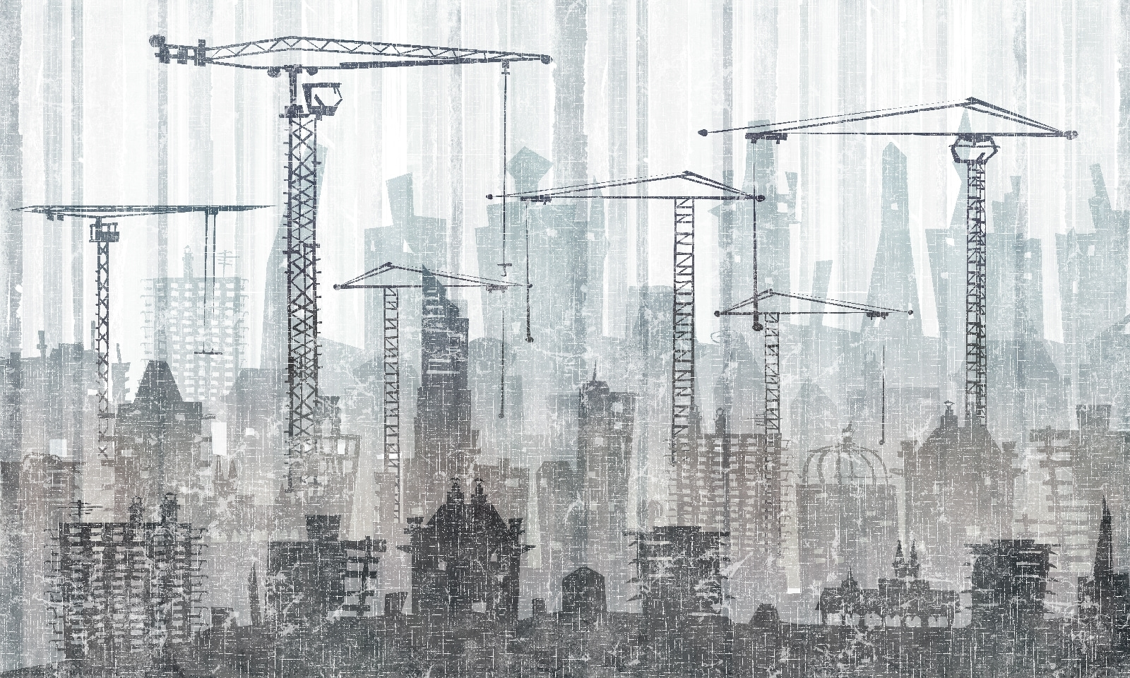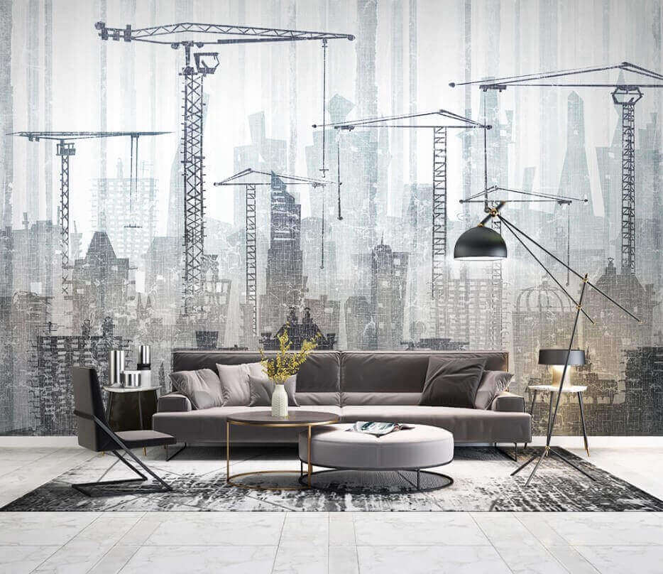 Transform any space with the captivating “Wall Murals Cityscape with Cranes.” Imagine walking into a room that feels like it’s alive with the hustle and bustle of a city in the making. The striking geometric design, paired with those cranes—seriously, they almost feel like they could lift you up—screams urban chic.