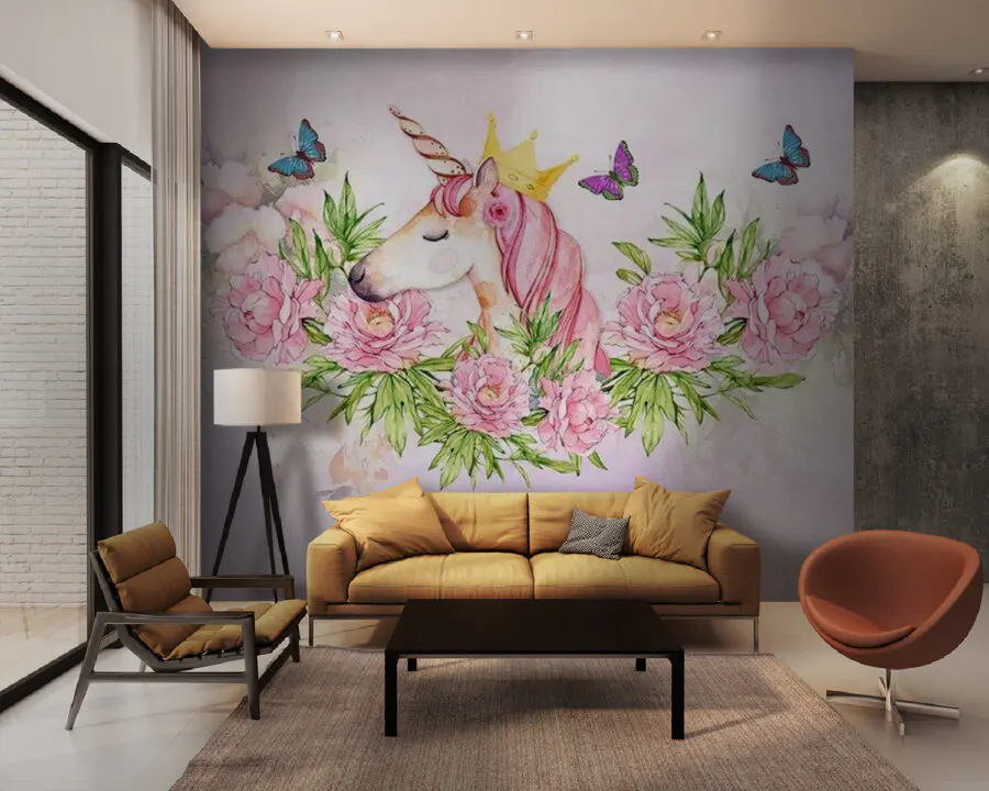 Transform any room into a whimsical daydream with this enchanting wall mural. Picture a majestic unicorn in a crown, surrounded by vibrant butterflies and blooming flowers—perfect for a little one’s sanctuary or any corner craving a sprinkle of magic. The soft pastel hues create a calming vibe, inspiring moments of creativity and joy. Imagine kids giggling as they spot the fluttering butterflies, or daydreaming with their own unicorn friends! This mural isn’t just decor; it’s a doorway to adventures filled with rainbows and endless imagination. Perfect for walls that tell stories.