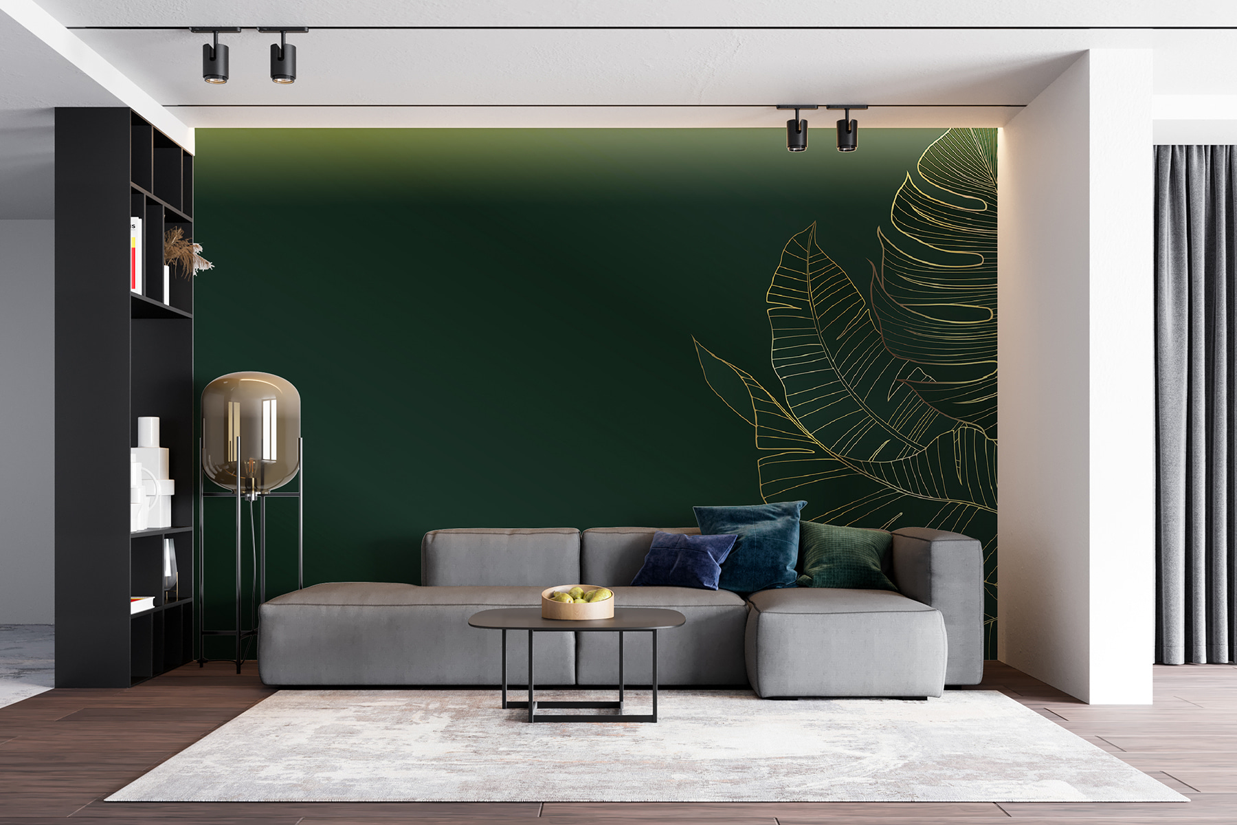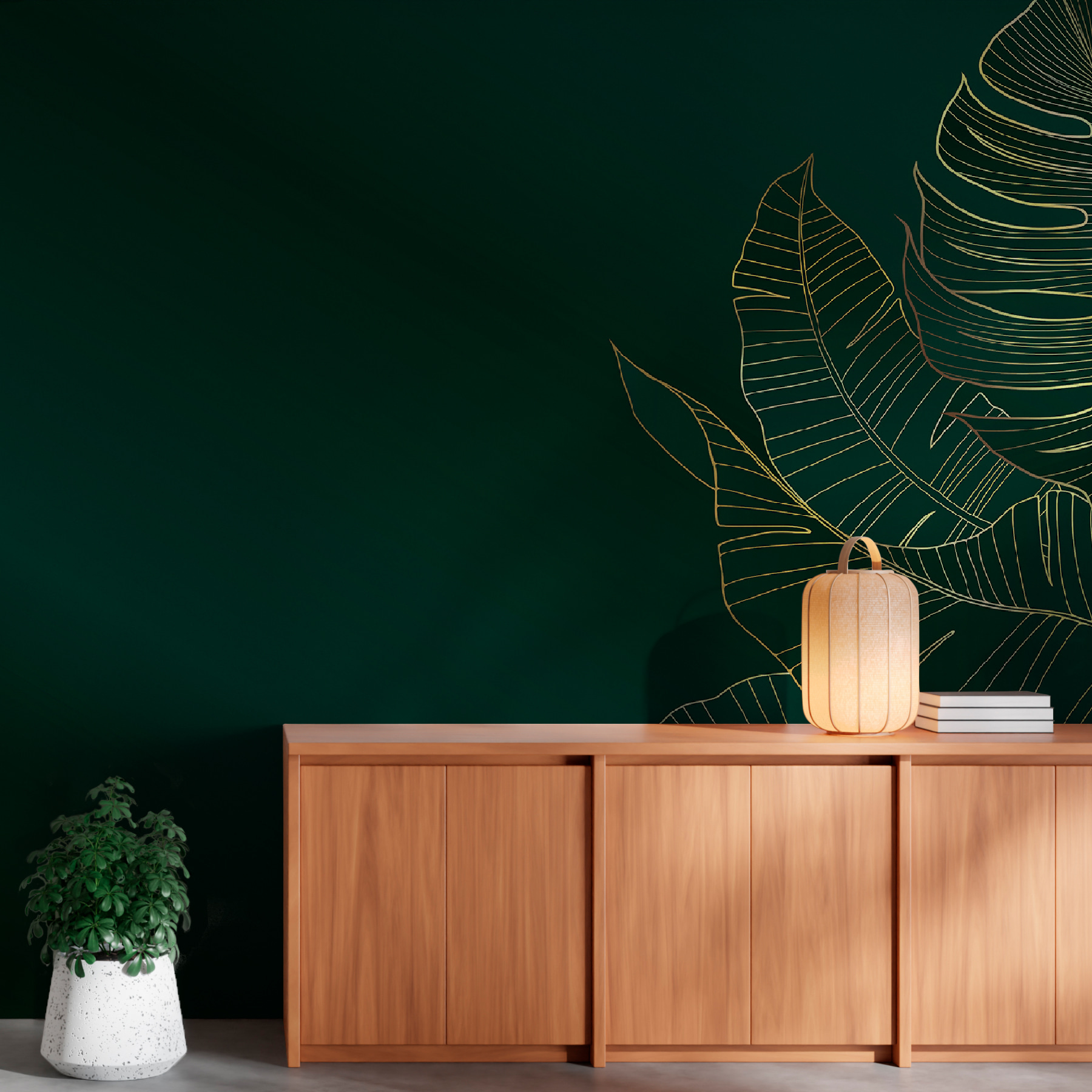 Transform your space with this stunning mural featuring elegant leaves against a dark backdrop. It brings a cozy feel, like stepping into a serene forest at twilight. Imagine waking up and sipping coffee while those leaves seem to whisper secrets of nature—how calming is that? Perfect for a living room or a cozy nook, this design just invites relaxation. It’s like a little hug for your walls! Plus, there’s something about that rich color that just makes everything feel complete. So go ahead, let your walls tell a story!