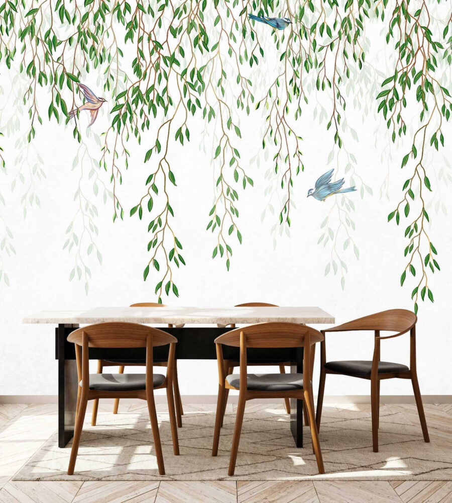 Imagine a cozy corner in your home where the hustle of everyday life fades away. This enchanting wall mural, “Bird Sitting on a Branch,” invites nature right into your space. Picture delicate leaves swaying and cheerful birds perched just above—a perfect backdrop for lazy mornings with coffee or fun evenings with friends. The watercolor style adds a dreamy, soft touch that’s just right for a warm vibe. It’s like having a piece of serene woodland right on your wall. Transform an ordinary room into a tranquil retreat—now that’s winning at decor! Just bear in mind, you might need some extra bird feeders nearby, just in case!