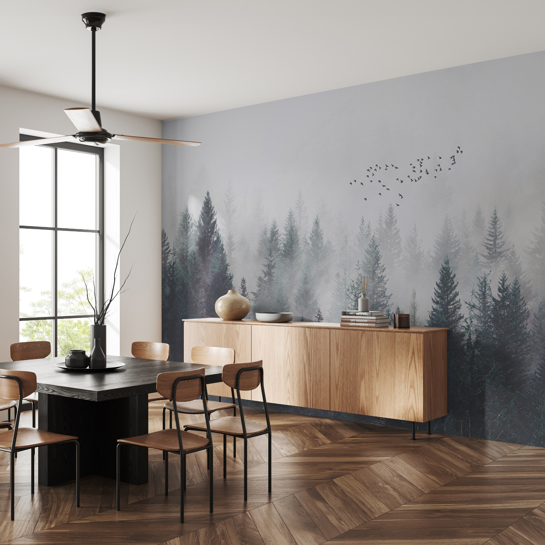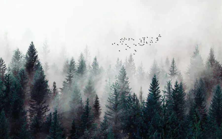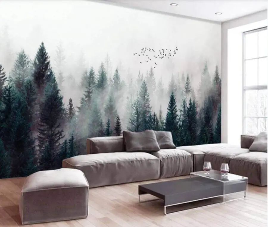 Transform any space with this stunning mural, “Flock of Birds in the Sky.” Imagine walking into a room and feeling like you’ve stepped into a serene landscape, where gentle morning fog meets the chatter of birds taking flight. The calming hues of green and gray will make your walls feel alive, as if nature itself is sitting right there with you. It’s perfect for creating a cozy atmosphere—picture sipping coffee surrounded by tall pine trees and an endless sky above. Who knew wall art could whisk you away to such bliss? This mural adds a refreshing touch to any area, making it both inviting and calming. It’s what dreams are made of!