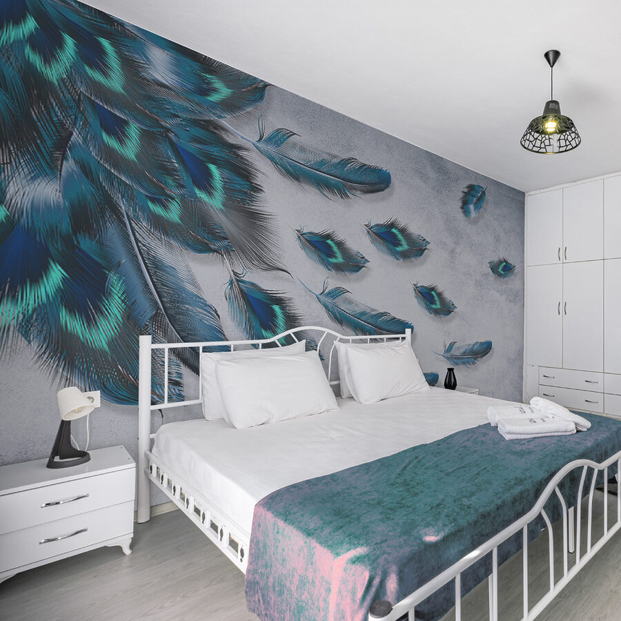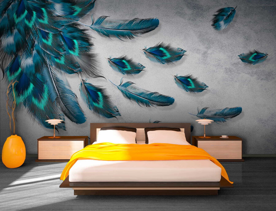 Imagine stepping into a room that feels like a gentle breeze blew in. This stunning mural, featuring blue feathers scattered on a soft background, does just that. It transforms walls into a dreamy escape—perfect for cozy reading nooks or vibrant living spaces.