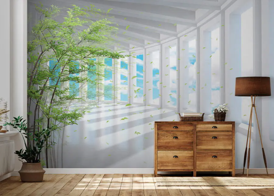 Transform any room into a serene escape with the “Sunlit Corridor with Vibrant Leaves” mural. Imagine stepping into a sun-drenched hallway, where fresh green leaves dance in a gentle breeze. This mural’s airy vibe pulls in nature’s charm, making spaces feel larger and brighter—like a secret garden you just discovered. Friends will walk in and think you’ve opened a real window to the outdoors. It’s perfect for anyone craving a breath of fresh air inside, maybe paired with some cozy spots to sit and sip a cup of tea. Let’s be real, who wouldn’t want that? So, go ahead and invite a slice of nature into your daily life!