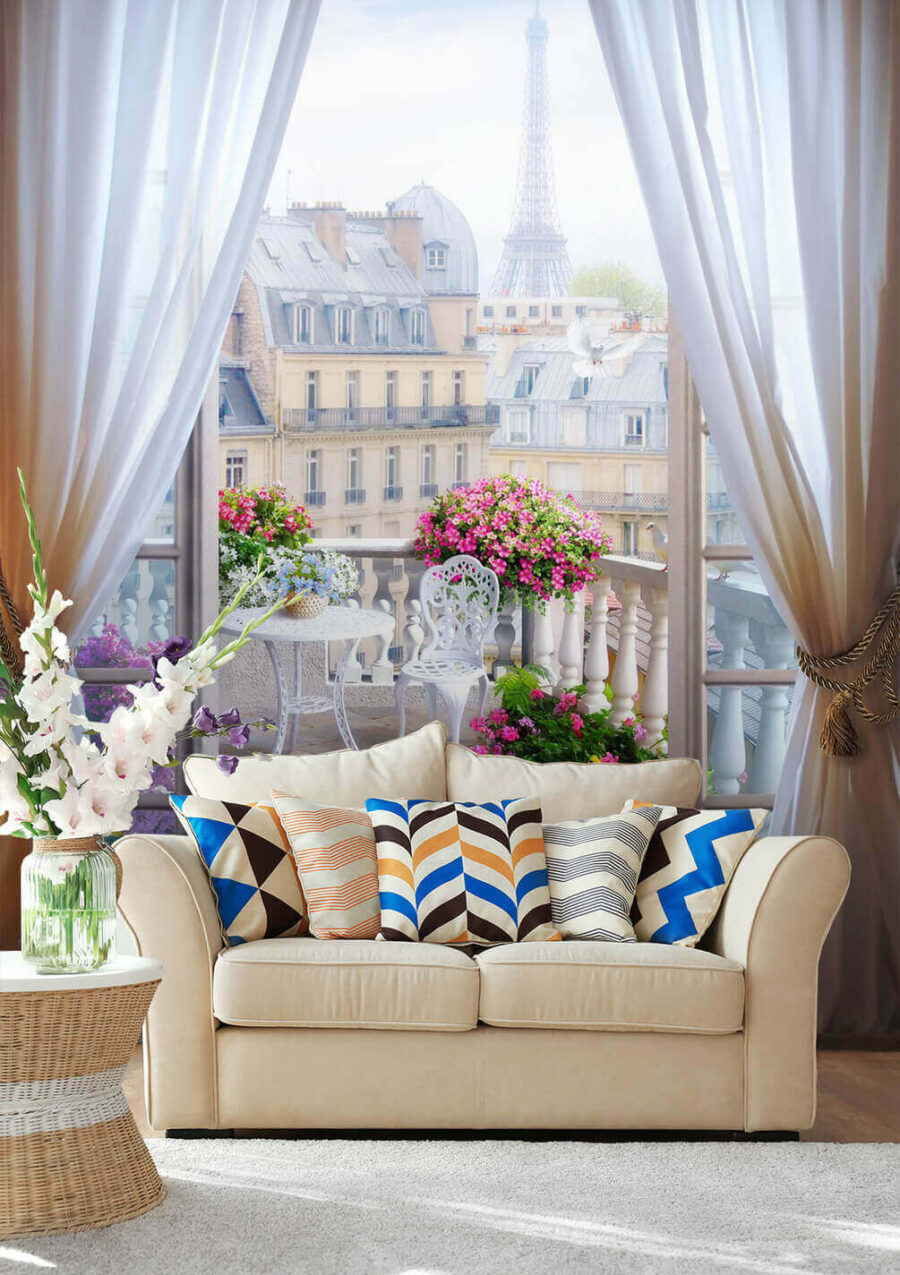 Transform any room with this stunning mural that brings the charm of a Parisian balcony right into your home. Imagine waking up to a view of flourishing flowers and the Eiffel Tower peeking through sheer curtains—it’s like living in a postcard! This mural captures that dreamy escape, perfect for daydreamers and lovers of unique decor. Picture sipping your morning coffee here, surrounded by vibrant blooms and a gentle breeze. It’s a little slice of paradise without the jet lag. So why not let your walls tell a story?