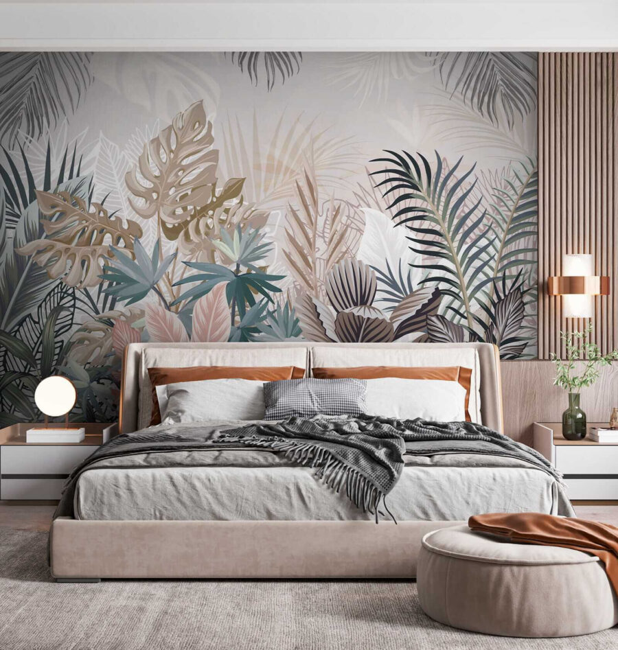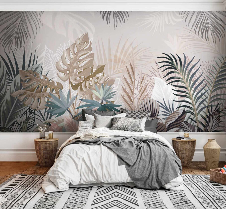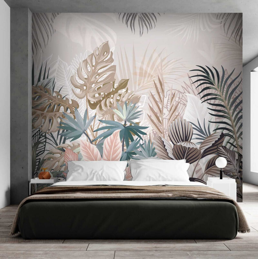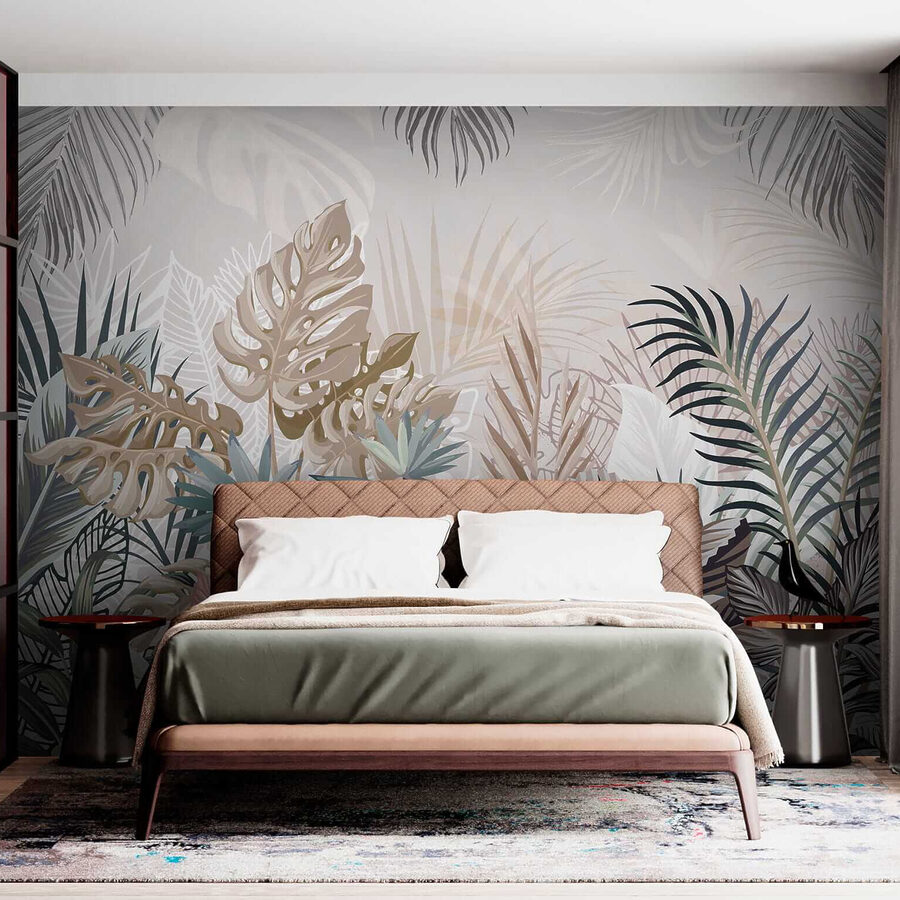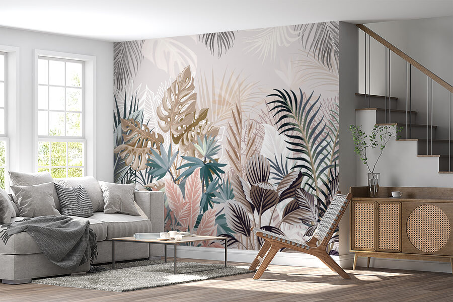 1 review for Wall murals Tropical leaves in muted hues