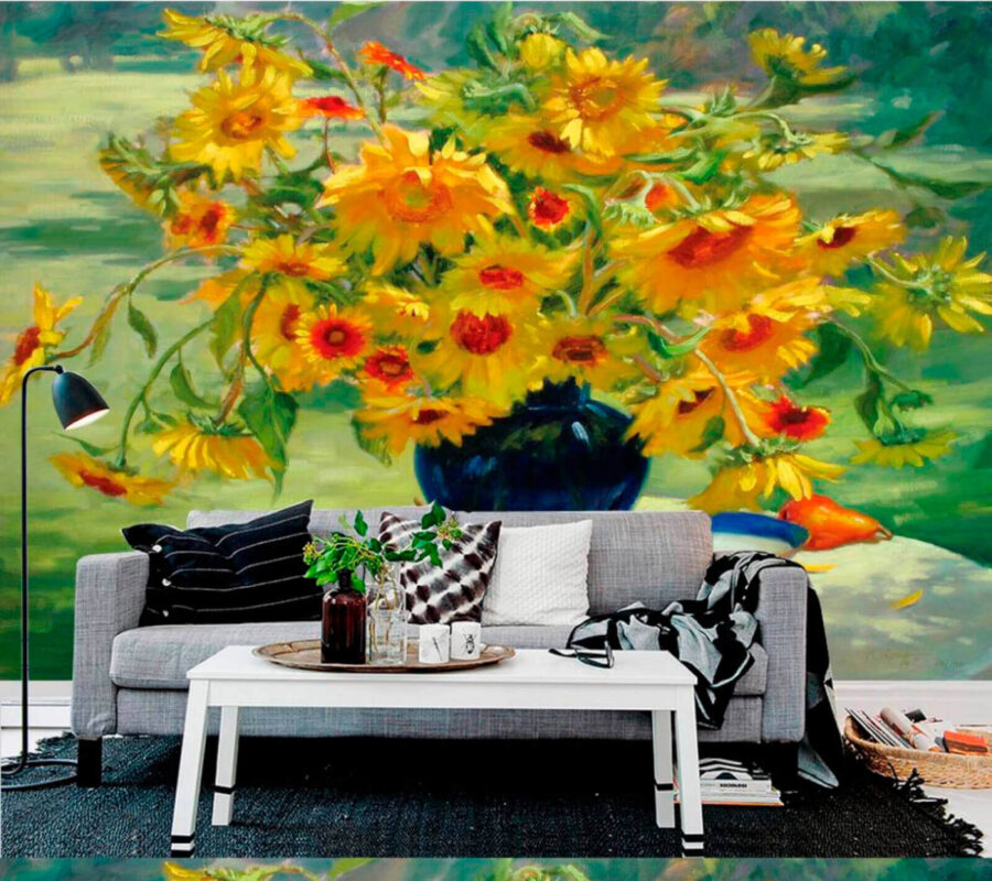 Imagine walking into a room and being greeted by a cheerful sight—a vibrant vase filled with sunny blooms and juicy pears. This wall mural bursts with life, as if it’s inviting you to take a seat, pour a glass of lemonade, and soak in the warmth. The rich colors harmonize beautifully, creating a cozy atmosphere that lifts the spirit. Perfect for a kitchen or dining area, it sparks joy and inspires conversations. Guests will feel right at home, surrounded by the essence of a summer garden. Don’t be surprised if you find yourself daydreaming about picnics and sunny days—this piece has that effect!